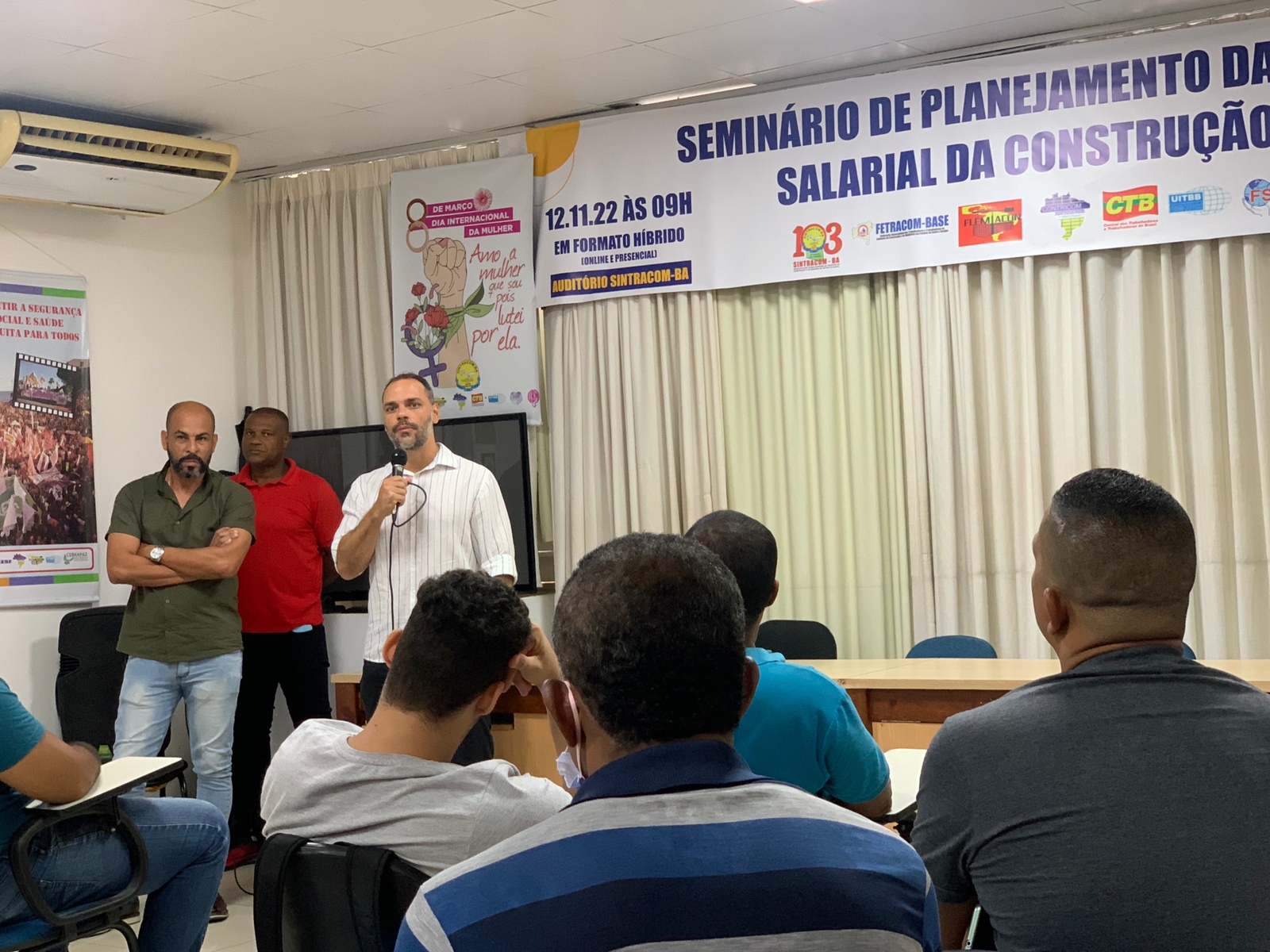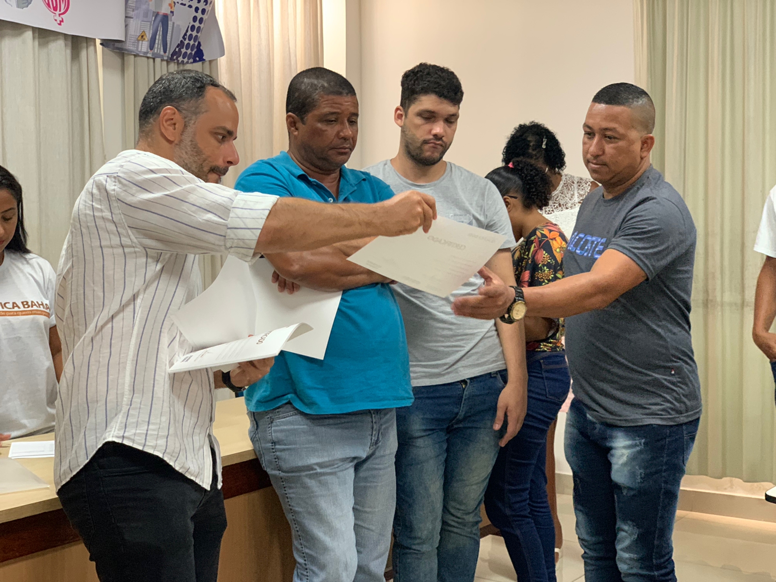 No dia 14 de janeiro, o presidente do SINTRACOM-BA Carlos Silva, o presidente e o diretor do Sinduscon, respectivamente Alexandre Landim Fernandes e Ignaldo Francisco Fernandes, e o vereador Augusto Vasconcelos (PCdoB) participaram, no auditório do SINTRACOM-BA, do encerramento e certificação do Curso de Eletricista Predial, do programa Qualifica Bahia, realizado em nosso Sindicato.