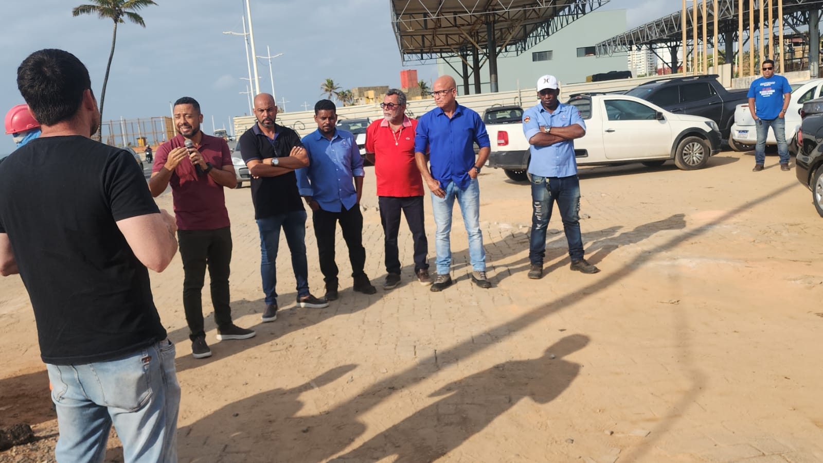 Nesta quarta-feira, 9 de outubro, o presidente do SINTRACOM-BA, Carlos Silva, e os diretores Raimundo Brito e Edson Ataíde visitaram o canteiro de obras da Construtora BSM e falaram sobre representatividade sindical com os trabalhadores (as).