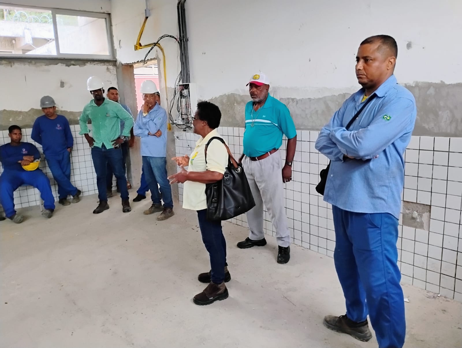 Nesta quarta-feira, 15/01, os diretores do SINTRACOM-BA, Marcos César, Hercília Conceição e Dioclecio Menezes, visitaram o canteiro de obras da Pejota, Escola de Tempo Integral, no bairro de Mussurunga, em Salvador.