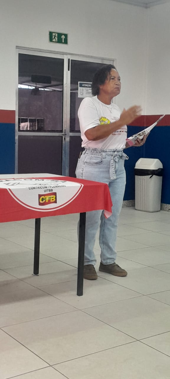 Em seguida, a diretora de Imprensa do SINTRACOM-BA e presidenta da FLEMACON, Lúcia Maia, fez sua saudação e convocou as trabalhadoras (es) presentes a entoarem, em coro, a canção “Maria, Maria” de Milton Nascimento e Fernando Brant (veja letra no final da matéria).