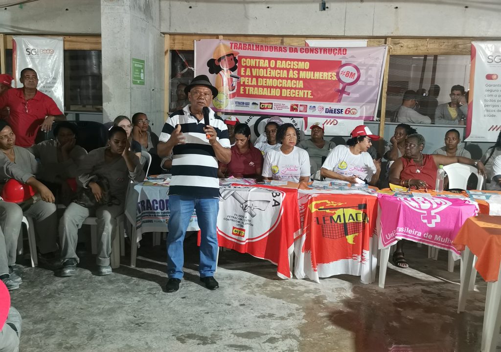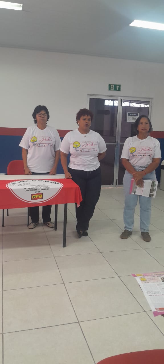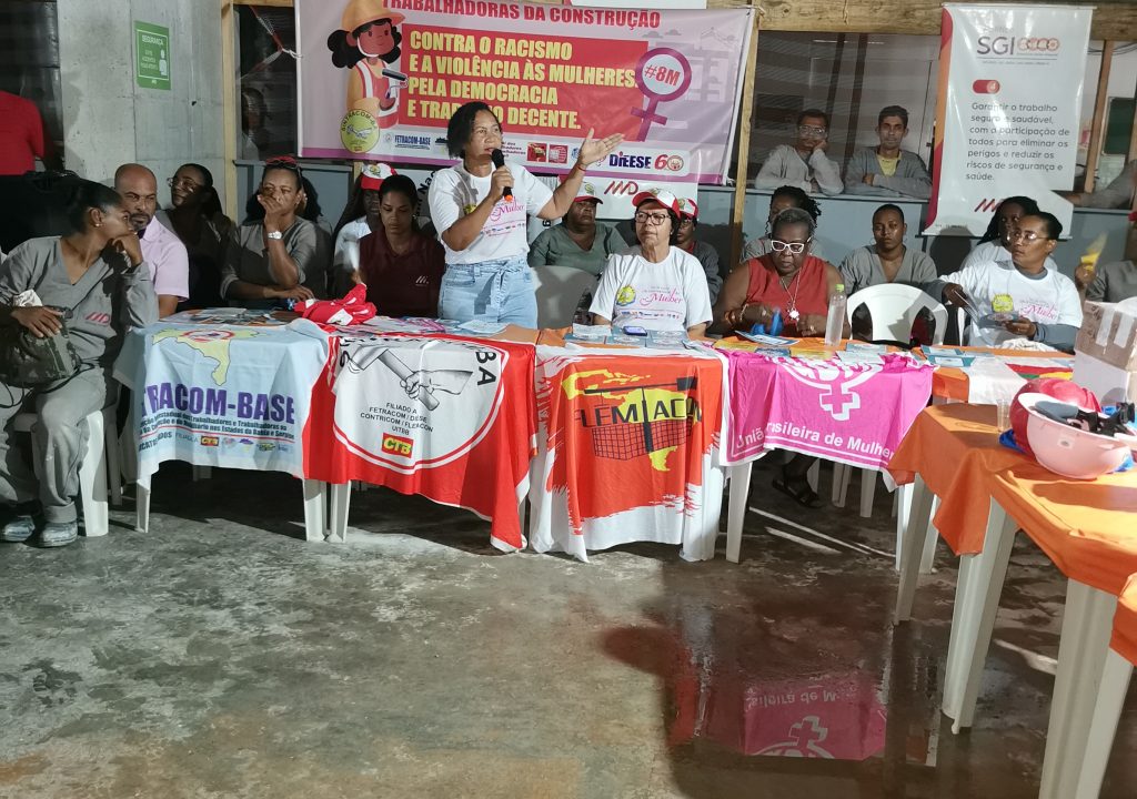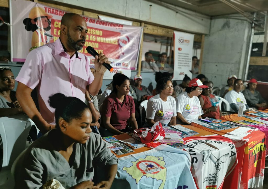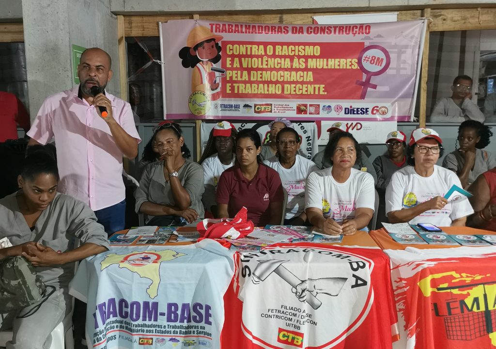 A diretora de Mulheres, Sônia Maria, que coordenou o evento junto com a Comissão de Mulheres e o diretor de Saúde e Segurança do Trabalho, Arilson Ferreira, fez a abertura e passou a palavra para o presidente DO SINTRACOM-BA Carlos Silva, que fez uma saudação às trabalhadoras pelo 8 de Março e falou sobre a Campanha Salarial dos Trabalhadores (as) da Construção 2025, e da assembleia geral realizada ontem, 11/03, no Largo de São Bento, que aprovou a proposta apresentada pela mediação da SRTE de 5,5% de reajuste salarial.