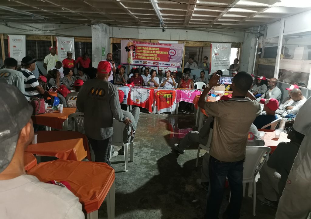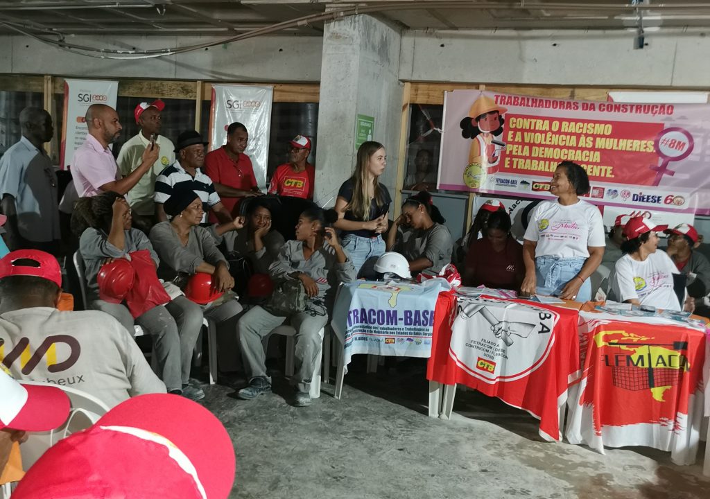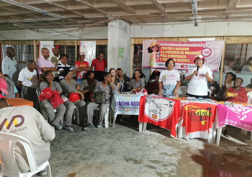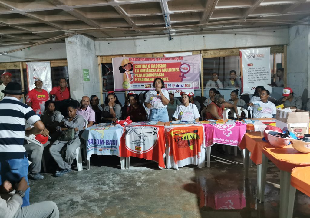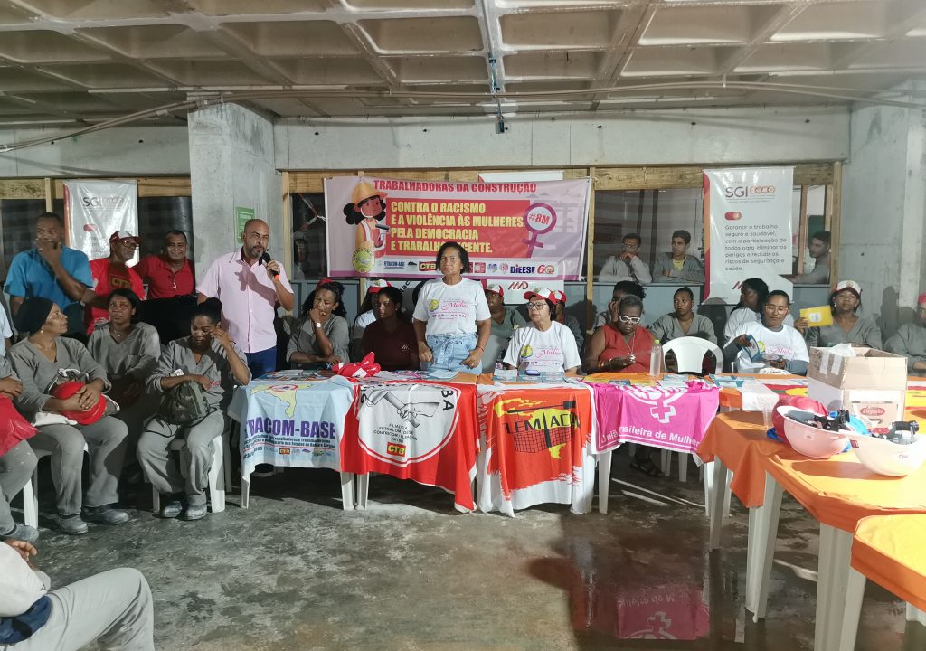 A diretora de Mulheres, Sônia Maria, que coordenou o evento junto com a Comissão de Mulheres e o diretor de Saúde e Segurança do Trabalho, Arilson Ferreira, fez a abertura e passou a palavra para o presidente DO SINTRACOM-BA Carlos Silva, que fez uma saudação às trabalhadoras pelo 8 de Março e falou sobre a Campanha Salarial dos Trabalhadores (as) da Construção 2025, e da assembleia geral realizada ontem, 11/03, no Largo de São Bento, que aprovou a proposta apresentada pela mediação da SRTE de 5,5% de reajuste salarial.