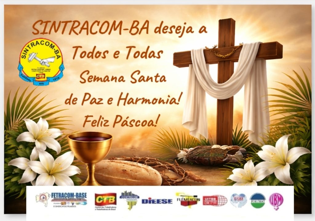 O SINTRACOM-BA deseja a todos e todas uma Semana Santa de fé, paz, harmonia e solidariedade! Que este período de descanso, esperança e renovação fortaleça…