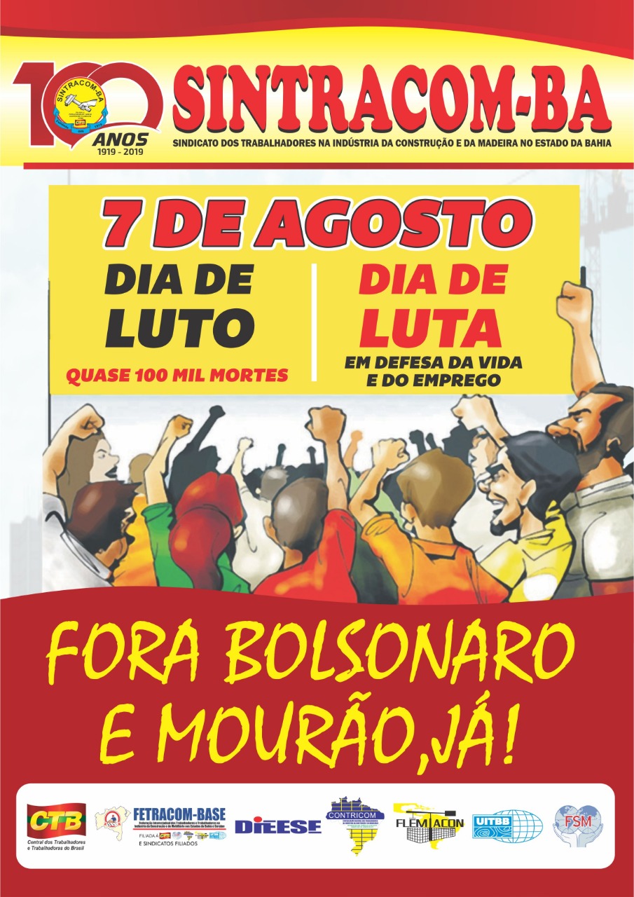 SINTRACOM-BA junto com as centrais sindicais: nesta sexta-feira, 07/08, novo ato pela vida, pelo emprego e Fora Bolsonaro.