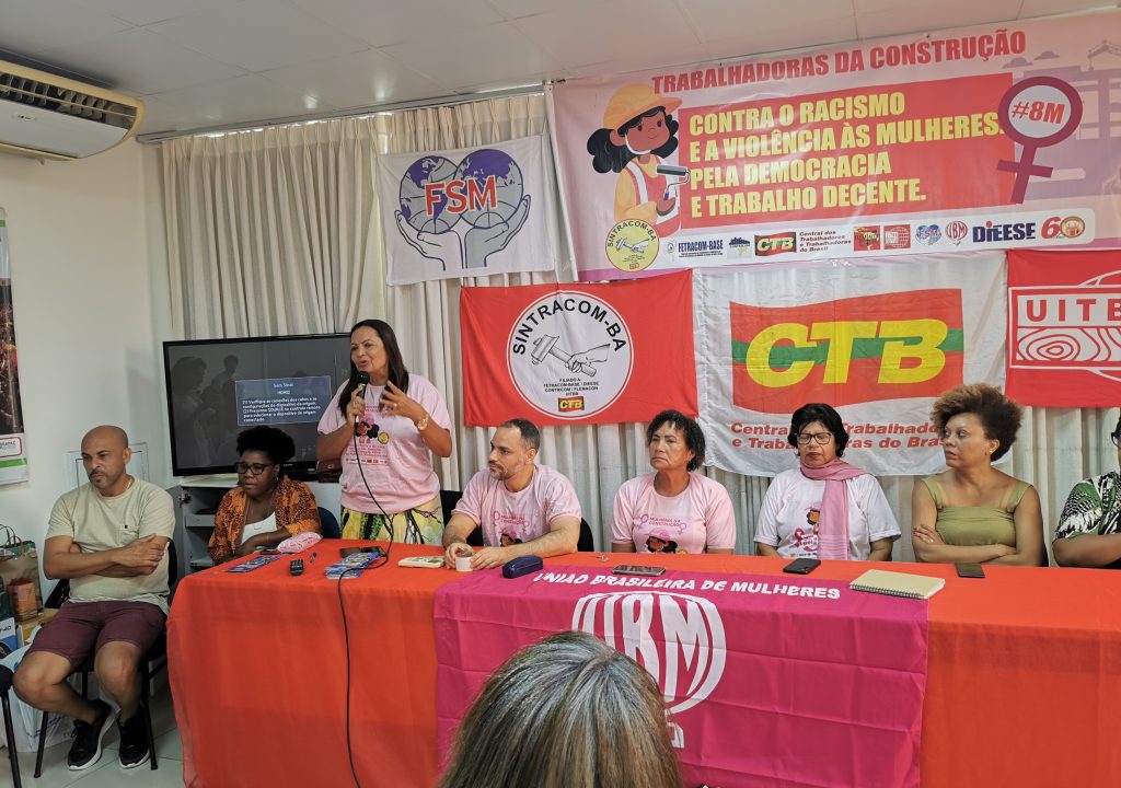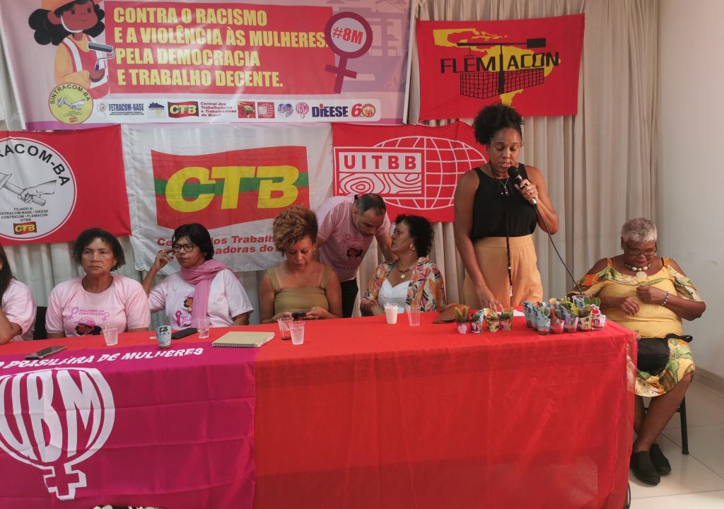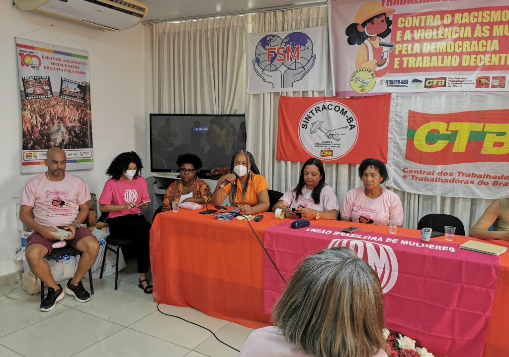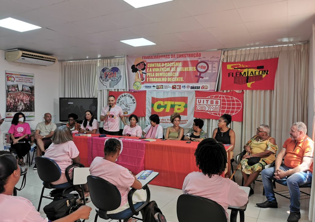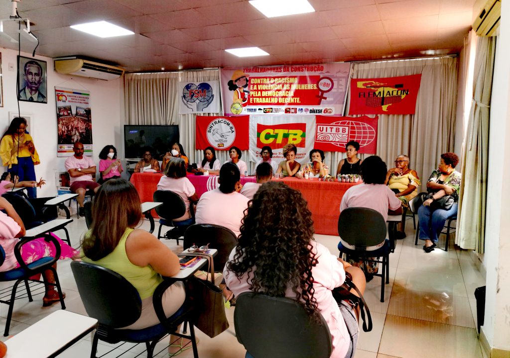 O SINTRACOM-BA, através da Secretaria de Mulheres, reuniu em sua sede, neste sábado, 09/03, trabalhadoras da construção, diretoras (es) e convidadas (os) para marcar o 8 de Março, Dia Internacional da Mulher e a luta das mulheres contra o racismo, a violência de gênero, pela democracia e o trabalho decente.