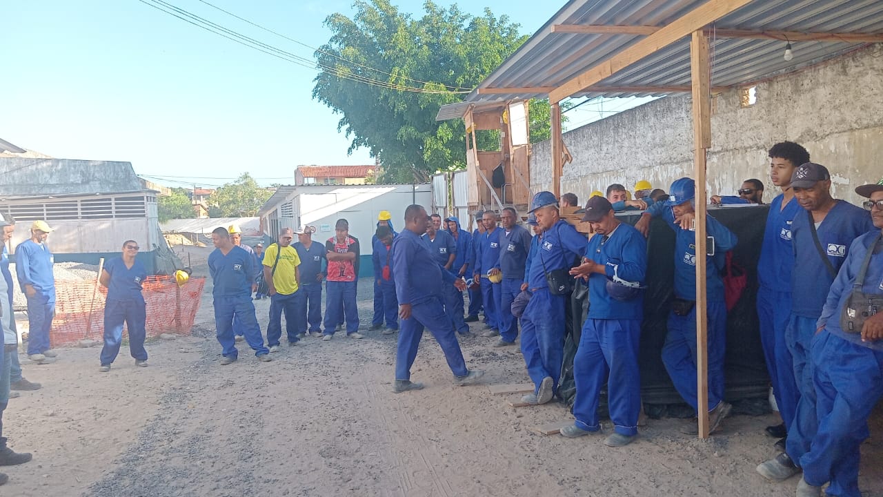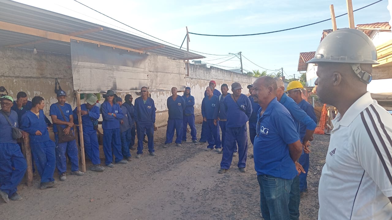 Os diretores do SINTRACOM-BA, Antônio Carlos dos Santos e Ailton Santos, participaram hoje, 05/02, do DDS no canteiro de obra da QG, reforma do colégio militar, no município de Alagoinhas.
