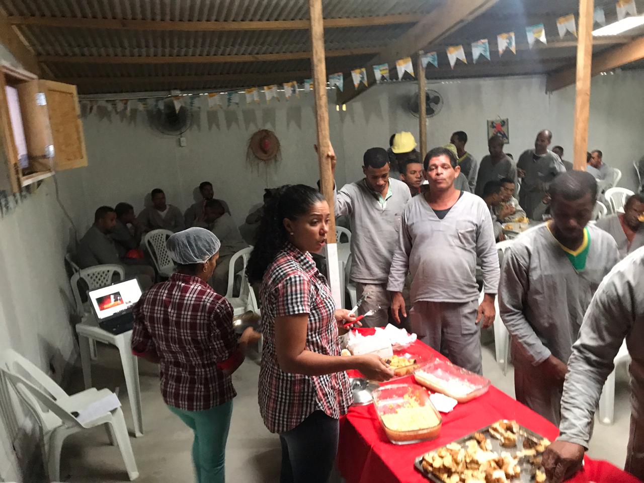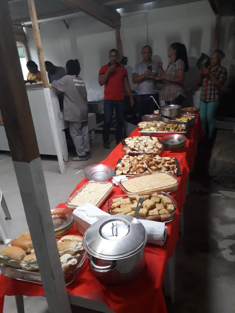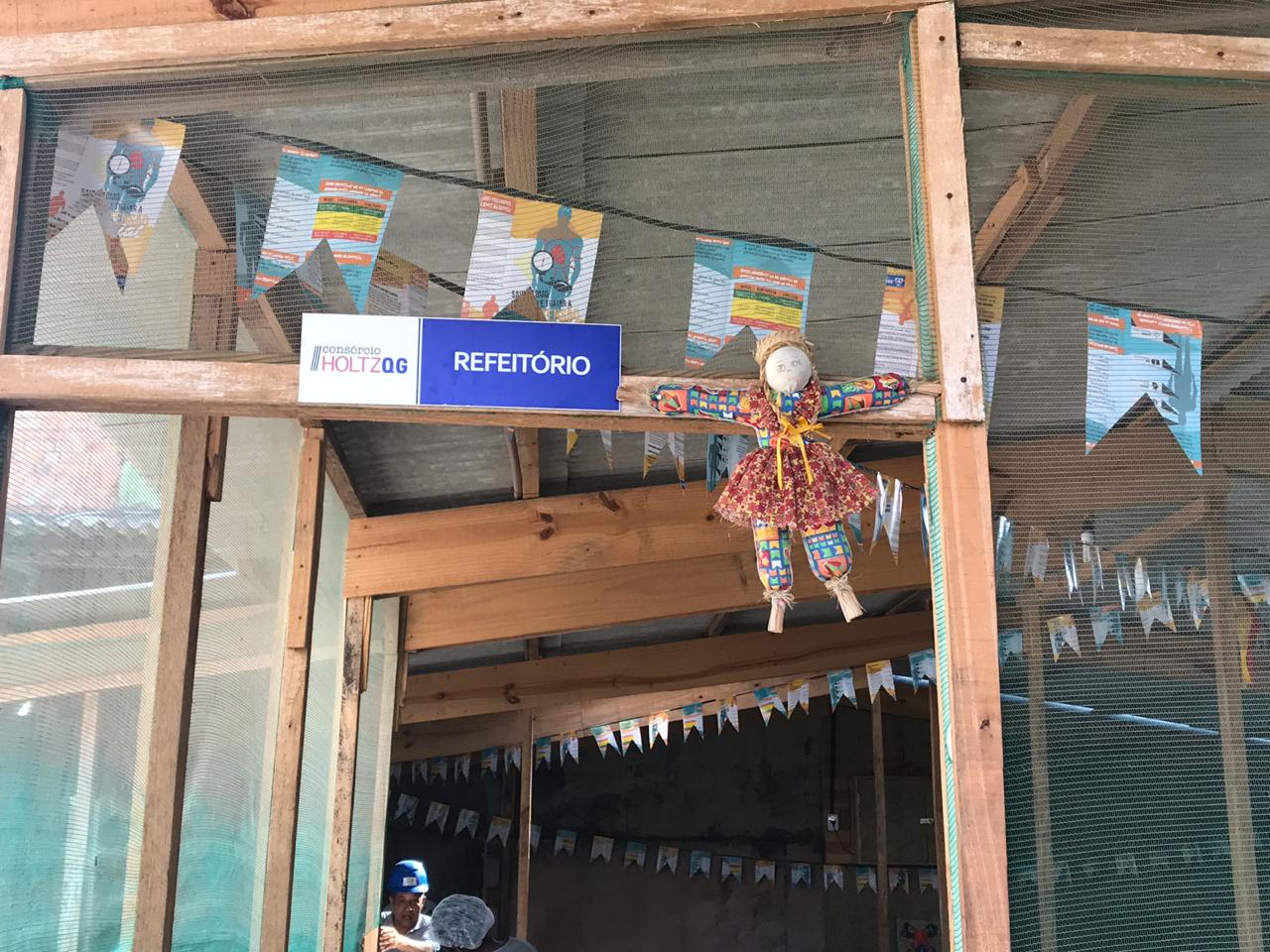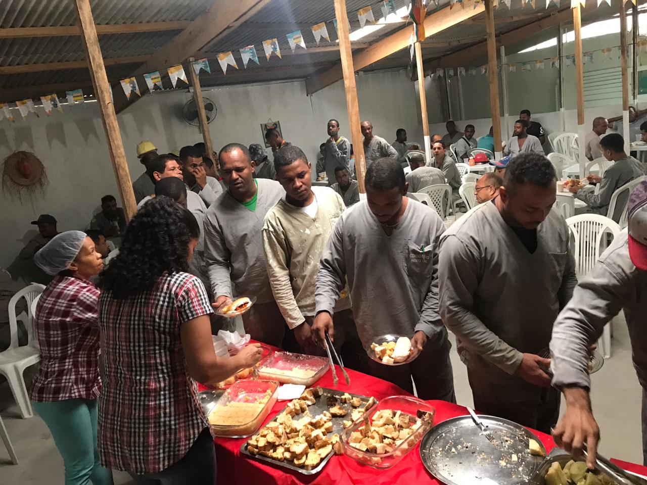 Trabalhadores (as) do Consórcio HoltzQG, obra do Hospital Roberto Santos, se reuniram nesta quarta-feira, no refeitório, para um café da manhã com delícias típicas da tradição do São João, que continua viva na Bahia e no Nordeste. Entre outros itens na mesa, cuscuz, mingau de munguzá, batata doce, banana da terra, bolos etc. O estilo junino fez a composição da decoração.