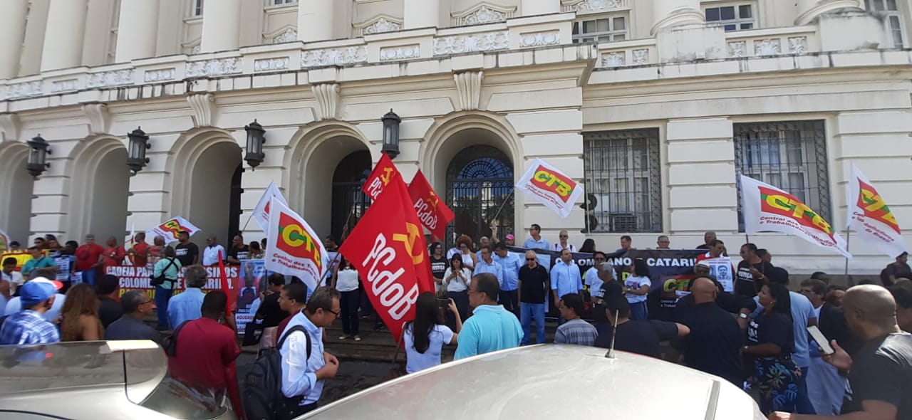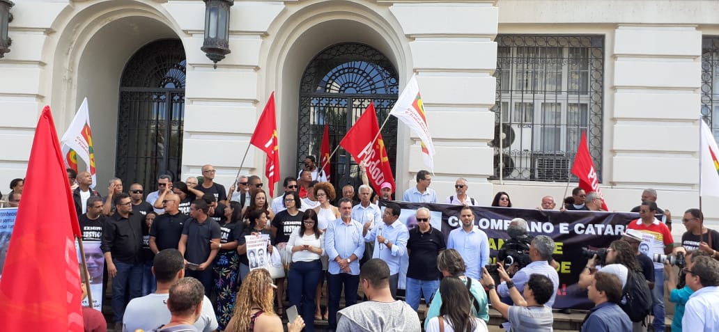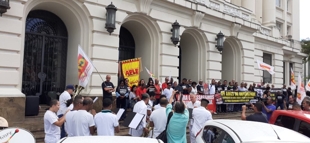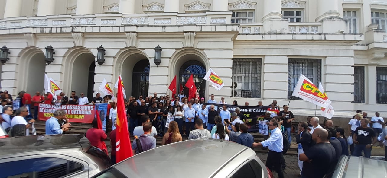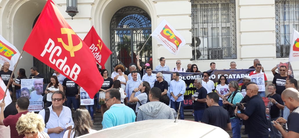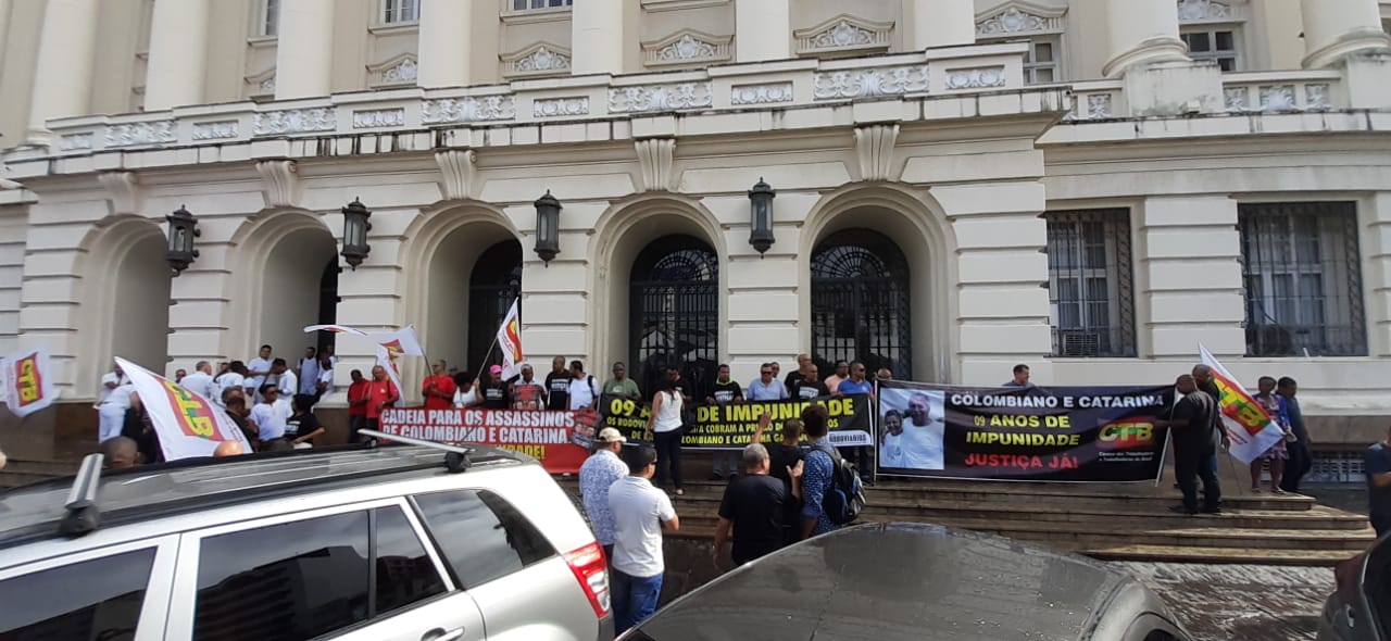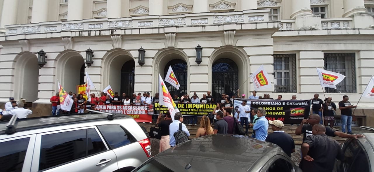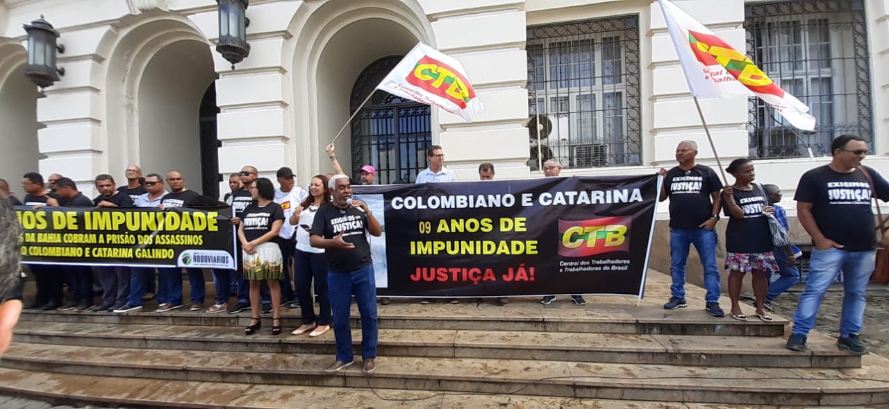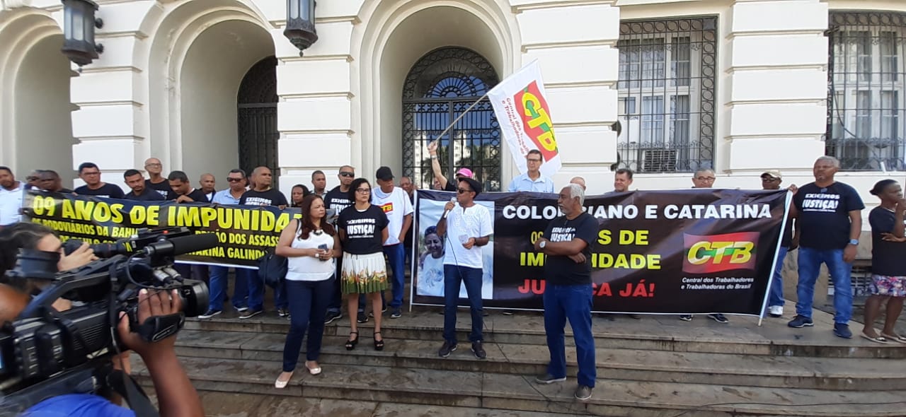 Diretores do SINTRACOM-BA, juntamente com a CTB Bahia, lideranças dos movimentos sindical e social, amigos e familiares realizaram na manhã de sexta-feira (28), um ato em frente ao Fórum Ruy Barbosa, para cobrar justiça e o fim da impunidade.