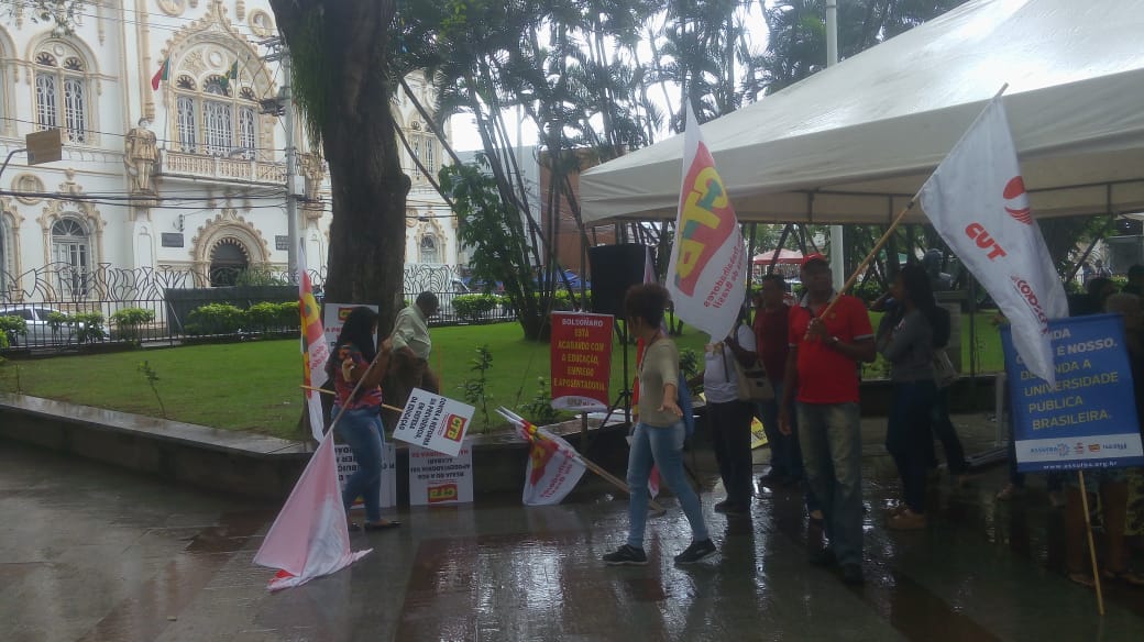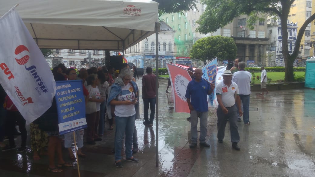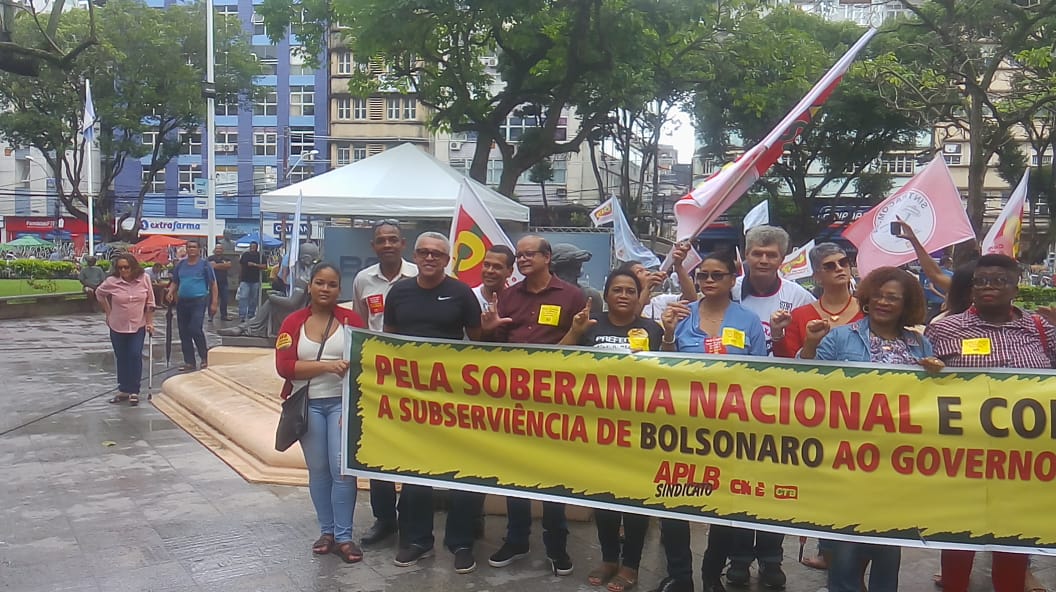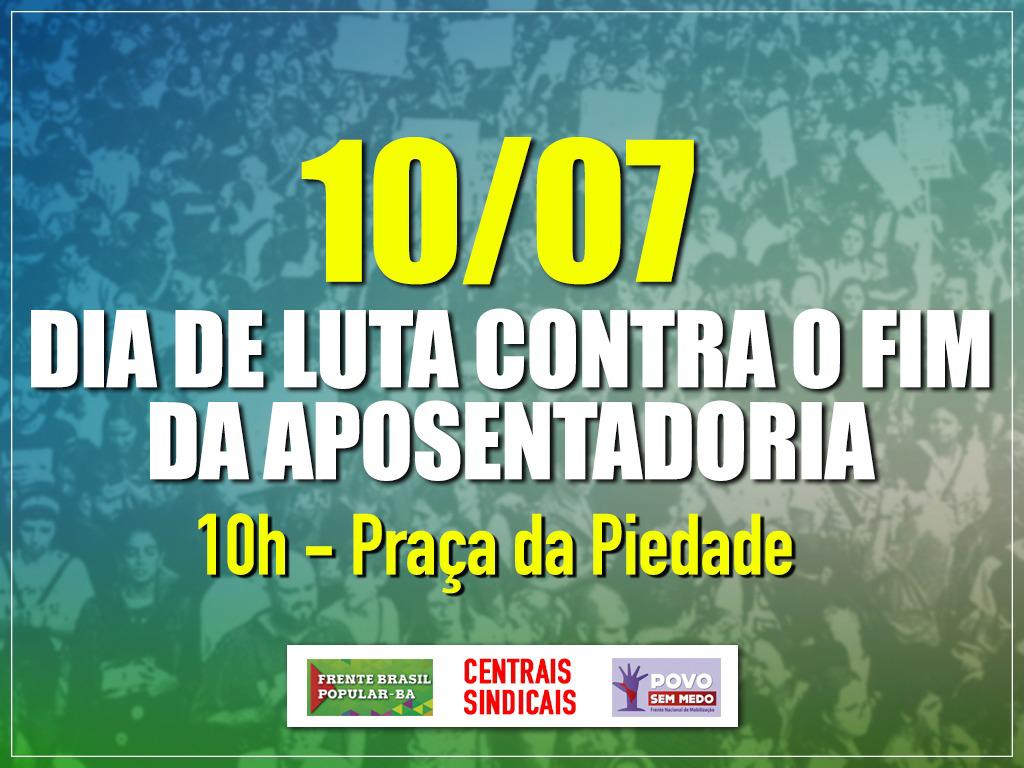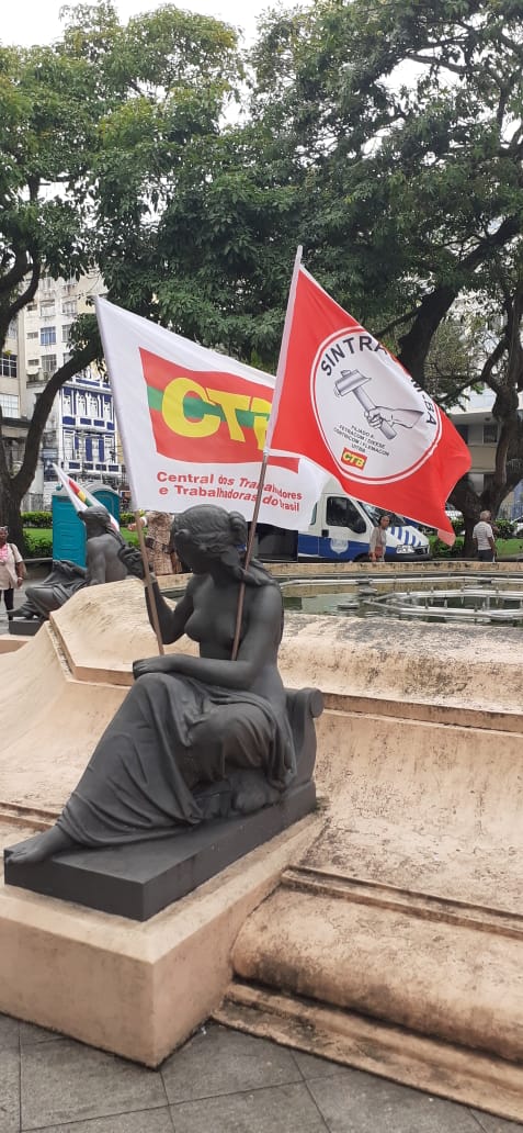 As fotos mostram a diretoria do SINTRACOM-BA no ato de luta e resistência contra o fim da aposentadoria, que aconteceu ontem, 10/07, na Praça da Piedade, em Salvador, na vigília dos trabalhadores, promovida pelas centrais sindicais, Frente Brasil Popular e Povo Sem Medo.