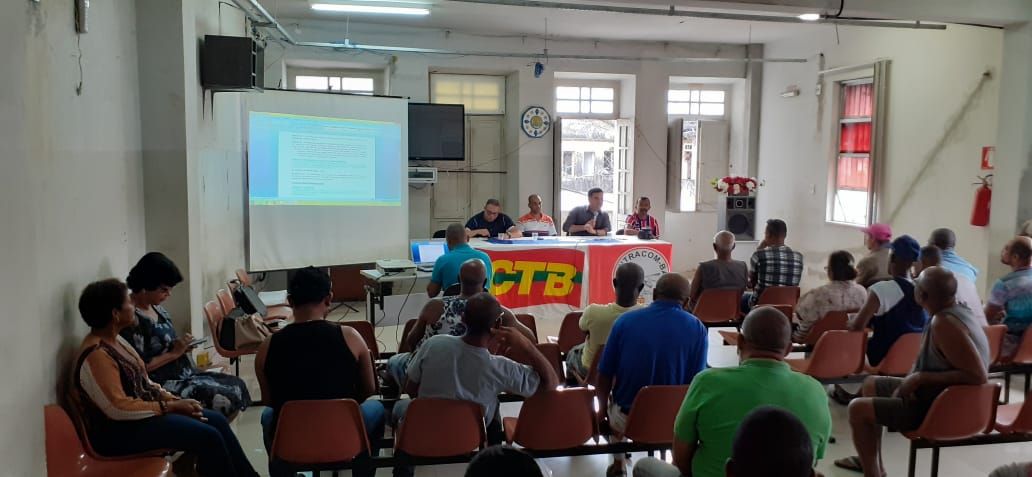 Presente também no Seminário, o advogado do SINTRACOM-BA e diretor da ABAT – associação Brasileira de Advogados Trabalhistas, Dr. Jorge Lima, falou sobre a Medida Provisória 881, que é mais um ataque do governo Bolsonaro aos direitos dos trabalhadores (as).