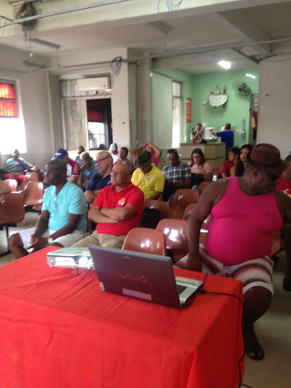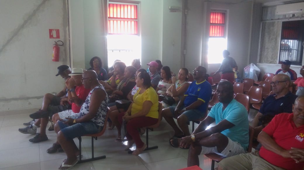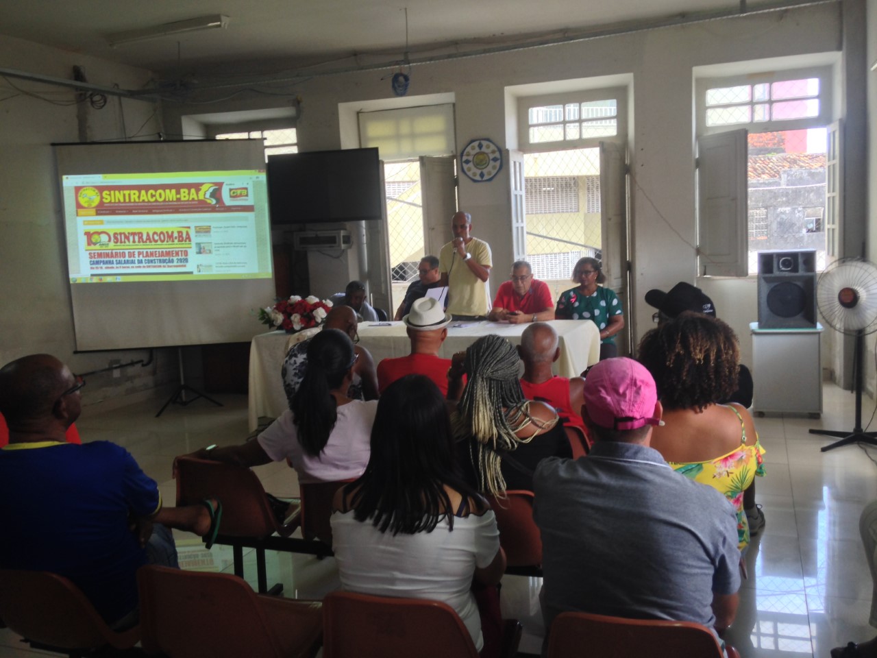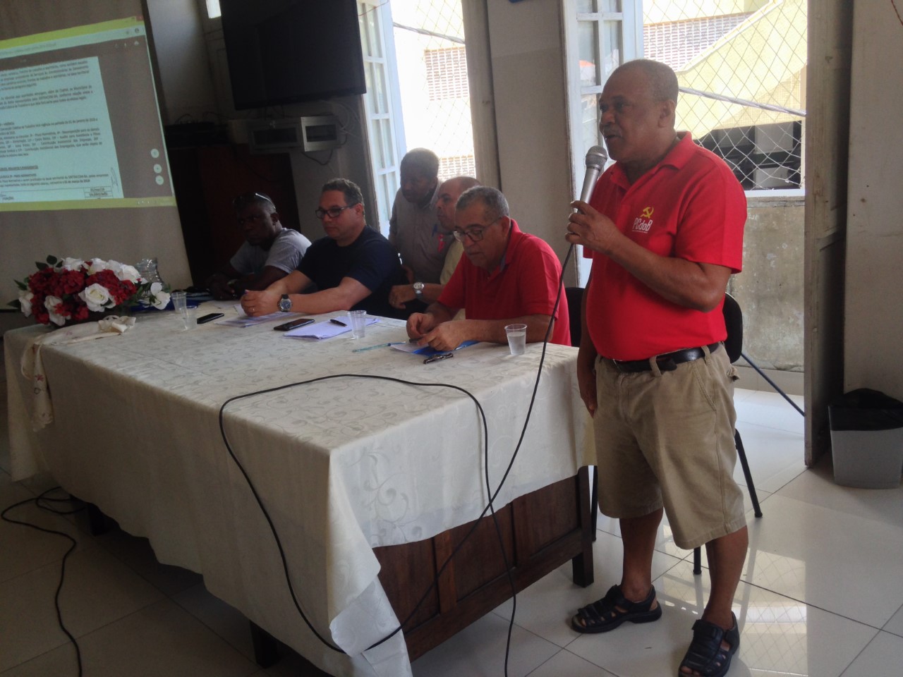 A mesa de abertura teve a seguinte composição: presidente do SINTRACOM-BA, Carlos Silva; presidente da FETRACOM-BASE, Edson Cruz; 2º secretário, José Ribeiro; diretora de Mulheres, Ednalva Bispo; e Everaldo Augusto, representante da Secretaria Estadual do Trabalho, Emprego, Renda e Esportes; que convocaram os trabalhadores (as) a se unirem ao Sindicato e à Federação nas lutas da Campanha Salarial 2020.