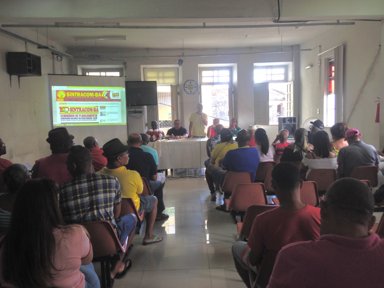 Trabalhadores (as) da construção e diretores do Sindicato se reuniram, no último sábado, 19/10, no auditório do SINTRACOM-BA e participaram do Seminário de Planejamento da Campanha Salarial 2020 dos Trabalhadores (as) da Construção.