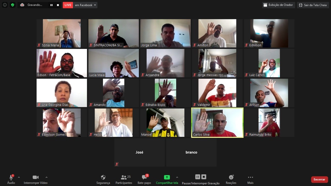 Na manhã do último sábado, dia 07/11, o Sintracom-BA realizou, através do aplicativo Zoom com transmissão ao vivo pelo Facebook, a Assembleia Geral Virtual e o Seminário de Planejamento da Campanha Salarial 2021 dos Trabalhadores da Construção.