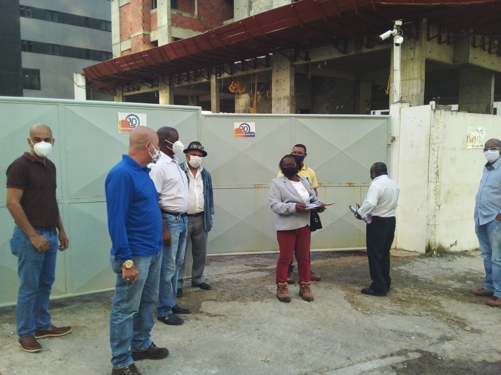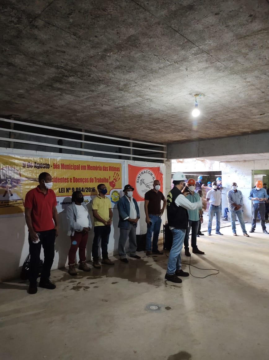 O SINTRACOM-BA realizou, nessa terça-feira (10), na obra da empresa Segura, no Itaigara, um ato em memória às vítimas de acidentes do trabalho e doenças ocupacionais, pela passagem do Dia Municipal em Memória às Vítimas de Acidentes e Doenças do Trabalho, 9 de agosto, com a presença de trabalhadores (as), do presidente Carlos Silva, do diretor de Saúde e Segurança Arilson Ferreira e demais diretores, do auditor fiscal da Superintendência Regional do Trabalho e Emprego (SRTE) Mário Diniz, e do vereador Augusto Vasconcelos (PCdoB), ouvidor-geral da Câmara Municipal.