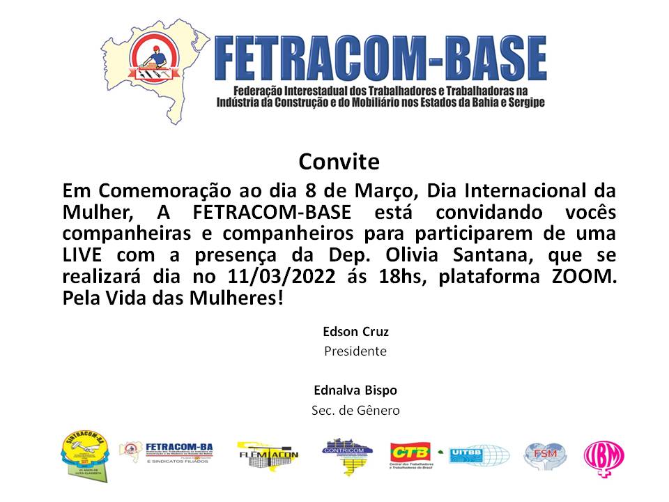 A Fetracom-BASE realizou na sexta-feira (11/03), às 18 horas, uma reunião virtual, através do Zoom agendada, para celebrar o Dia Internacional da Mulher (08/03) e o Março Mulher, que acontece com eventos de diversas entidades durante todo o mês de março.