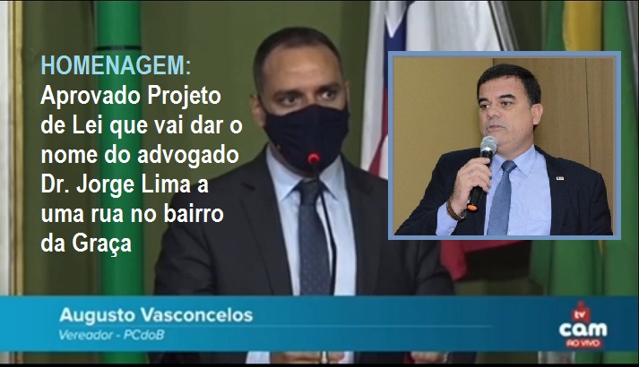 O Projeto de Lei 81/2021 que institui a Rua Doutor Jorge Lima, no bairro da Graça, de autoria do vereador Augusto Vasconcelos (PCdoB), foi aprovado no dia 23/03, na Câmara Municipal de Salvador.