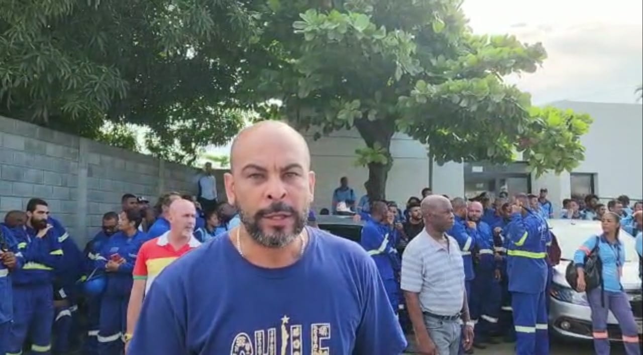 Carlos Silva, presidente do Sintracom-BA, acompanha a mobilização dos trabalhadores no canteiro da Floripark, no bairro de Pirajá, em Salvador, cobra uma solução urgente da empresa e da Coelba para o pagamento imediato dos valores devidos aos trabalhadores e que seus direitos sejam respeitados.