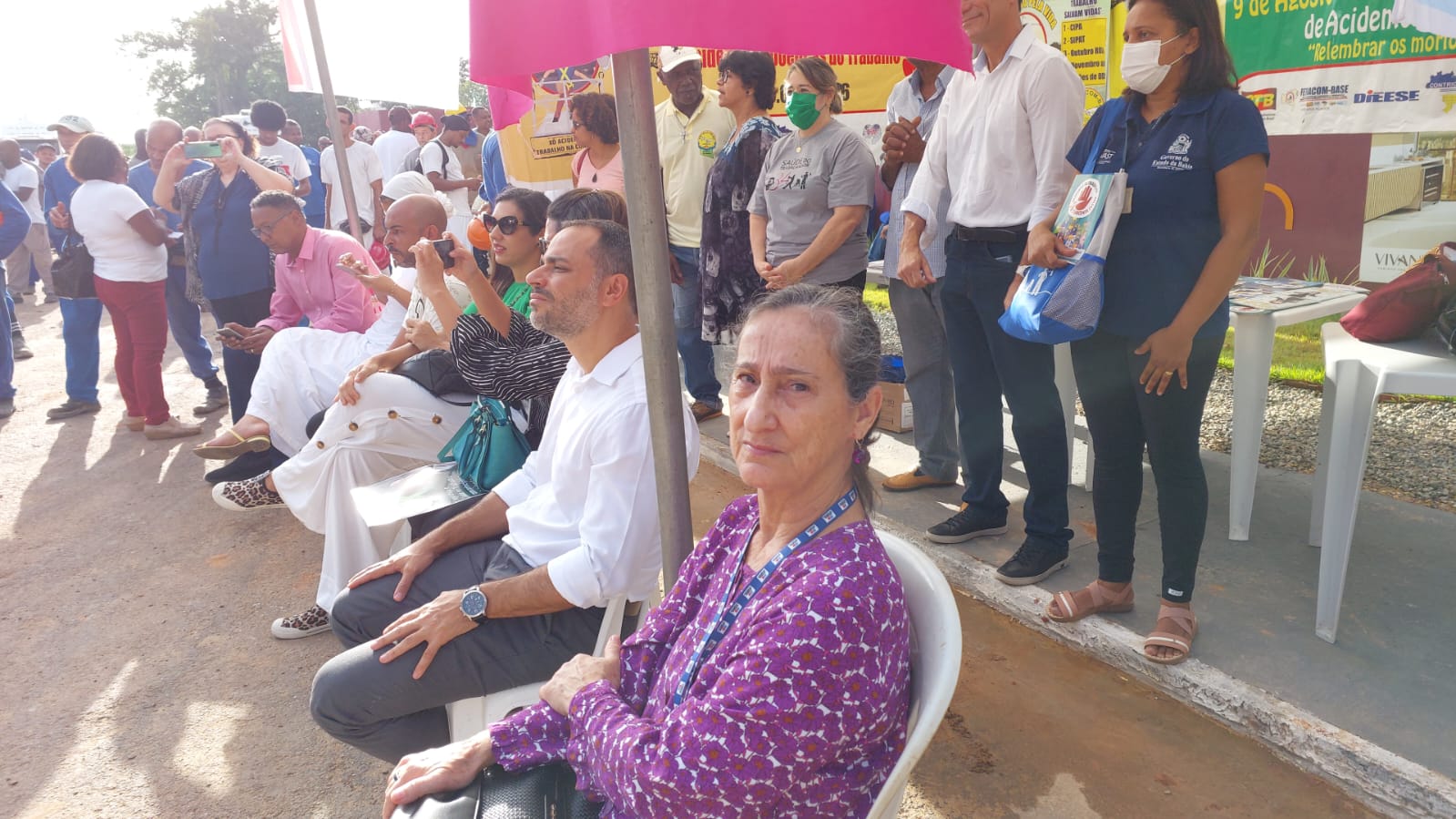 Davidson Magalhães Secretário do Trabalho (Setre), Dr. Ilan Fonseca, procurador do Ministério Público do Trabalho (MPT), Dra. Adriana Manta juíza e Rosemeire juíza aposentada (TRT5), Gildete e Jacira (CESAT DIVAST), Letícia Nobre (Secretária de Saúde), Célio (CTB-BA), Lidiane e Flávia (SRT antiga DRT), Naira (Marcha do Empoderamento Crespo), Jerônimo (PCdoB), Lucia Maia (FLEMACON), Sônia Maria (FETRACOM-BASE), Daniela (ASCON), Olivia Santana (Deputada Estadual (PCdoB) e Augusto Vasconcelos Vereador de Salvador (PCdoB), dentre outros.