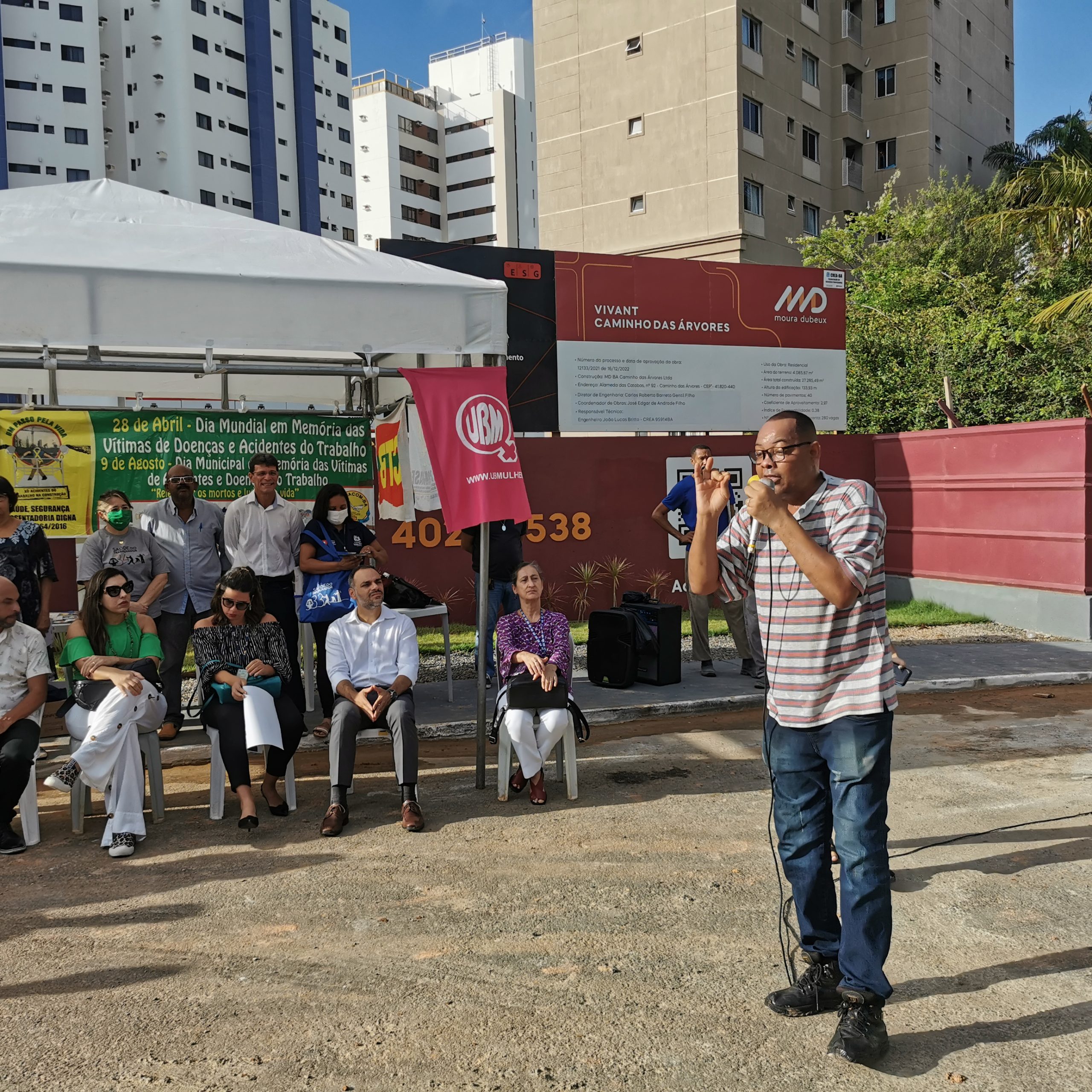 Começaram no dia 26/04 e culminaram em 28/04, Dia Mundial em Memória das Vítimas de Acidentes de Trabalho e Doenças Ocupacionais, com um evento memorável no canteiro de obras na Alameda Catabas, Caminho das Árvores, com a participação de trabalhadores e trabalhadoras das empresas ANC obra, MD obra e Civil. Após foram realizadas oficinas sobre saúde e segurança no trabalho.