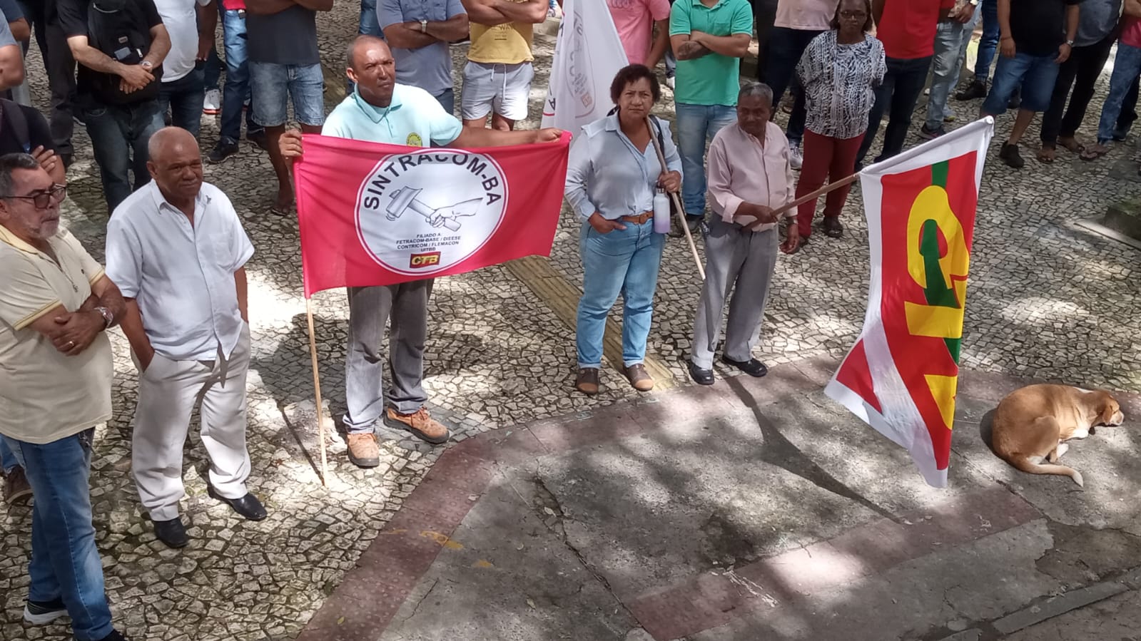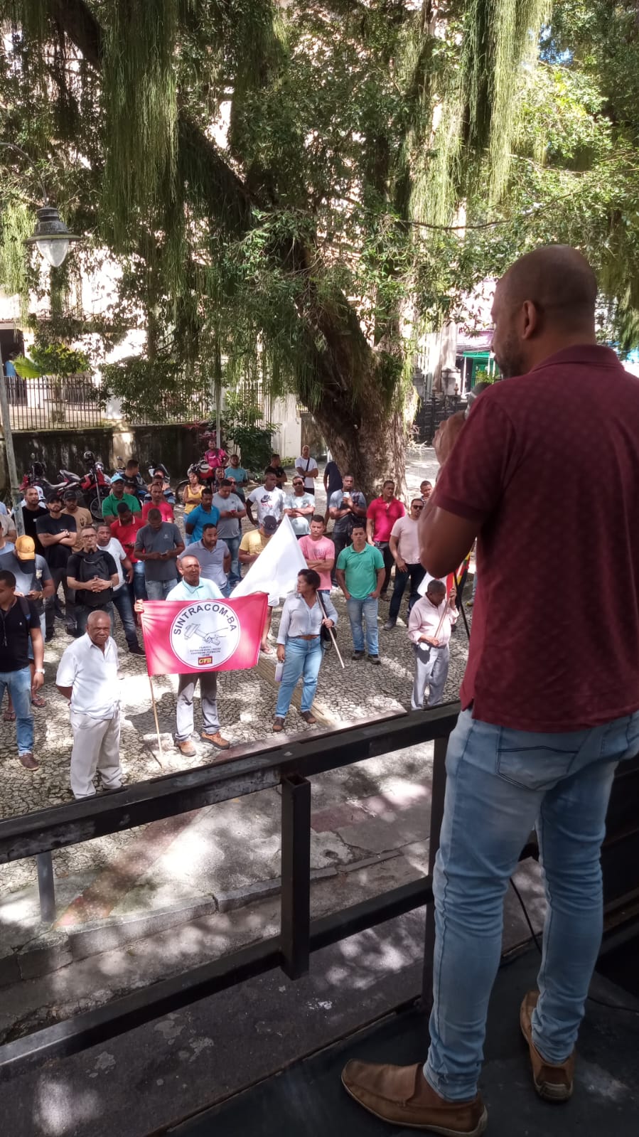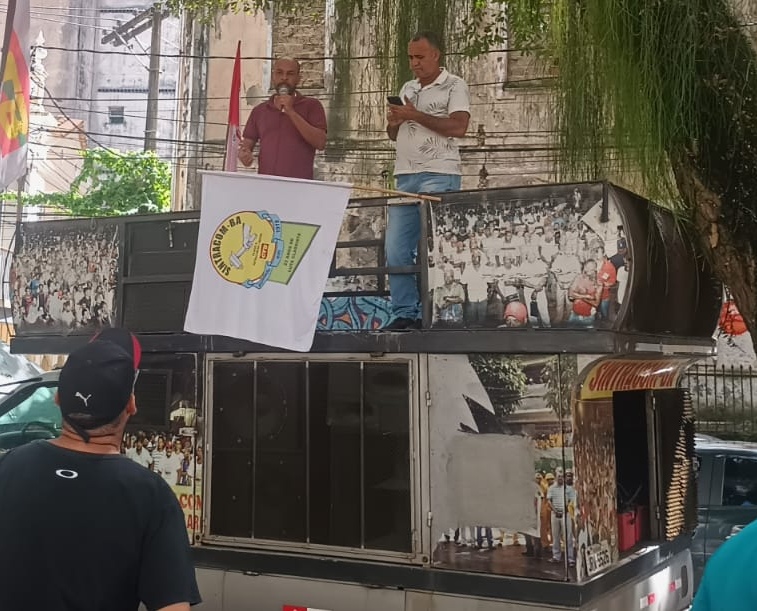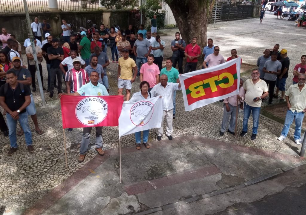 Na manhã desta sexta-feira, 04/08, trabalhadores e trabalhadoras da Floripark participaram de assembleia geral, convocada pelo SINTRACOM-BA e a FETRACOM-BASE, no Largo de São Bento, centro de Salvador, para decidir sobre o pagamento referente aos salários e cesta básica do mês de julho, negociado diretamente pelas duas entidades com a Coelba.