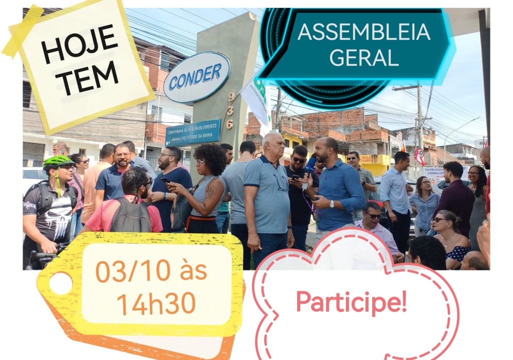 O SINTRACOM-BA – Sindicato dos Trabalhadores na Indústria da Construção e da Madeira no Estado da Bahia e a ASCON – Associação dos Funcionários e Ex-Funcionários da Conder, convocam os funcionários da Conder para participarem da Assembleia, que será realizada no dia 03.10.2023 (terça-feira), no auditório da ASCON, às 14h30, em primeira convocação, com a presença de 2/3 dos associados, e às 15h, com o número que houver, para tratarmos da seguinte pauta: