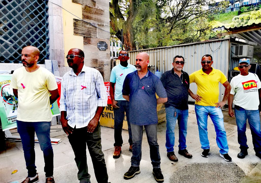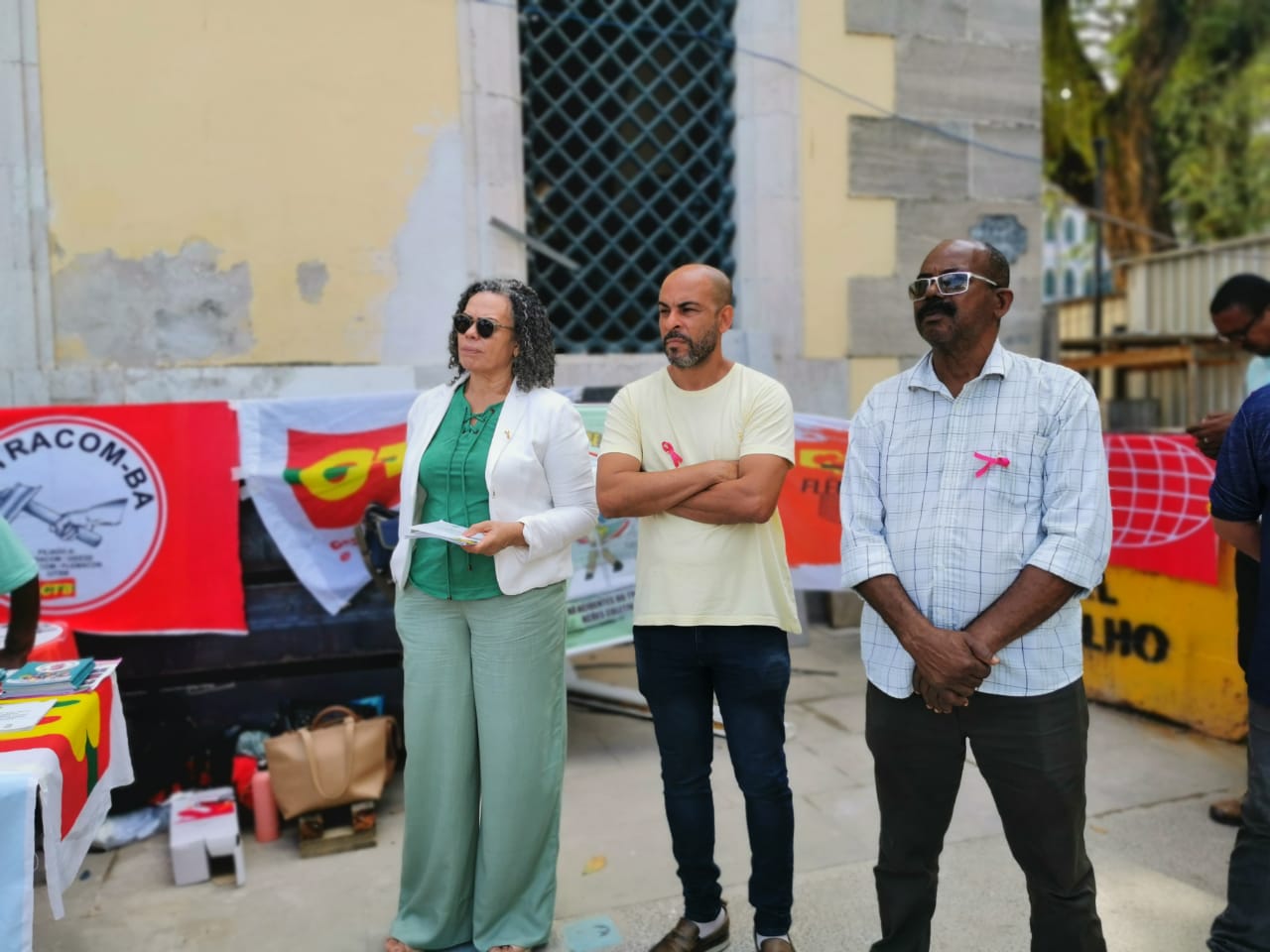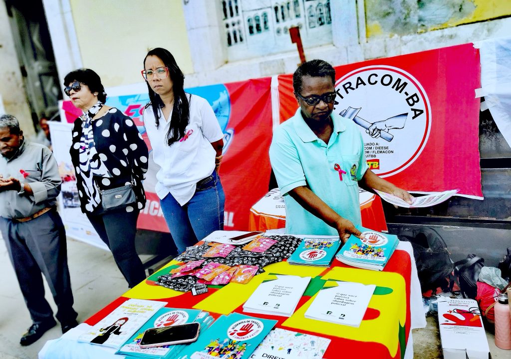Presentes o presidente do SINTRACOM-BA Carlos Silva e diretores (as) do Sindicato e da Federação, presidente da FLEMACON Lúcia Maia, Juízas do Trabalho Adriana Malta e Rosimeire, vereador Augusto Vasconcelos e representantes do FORUMAT e UITBB.