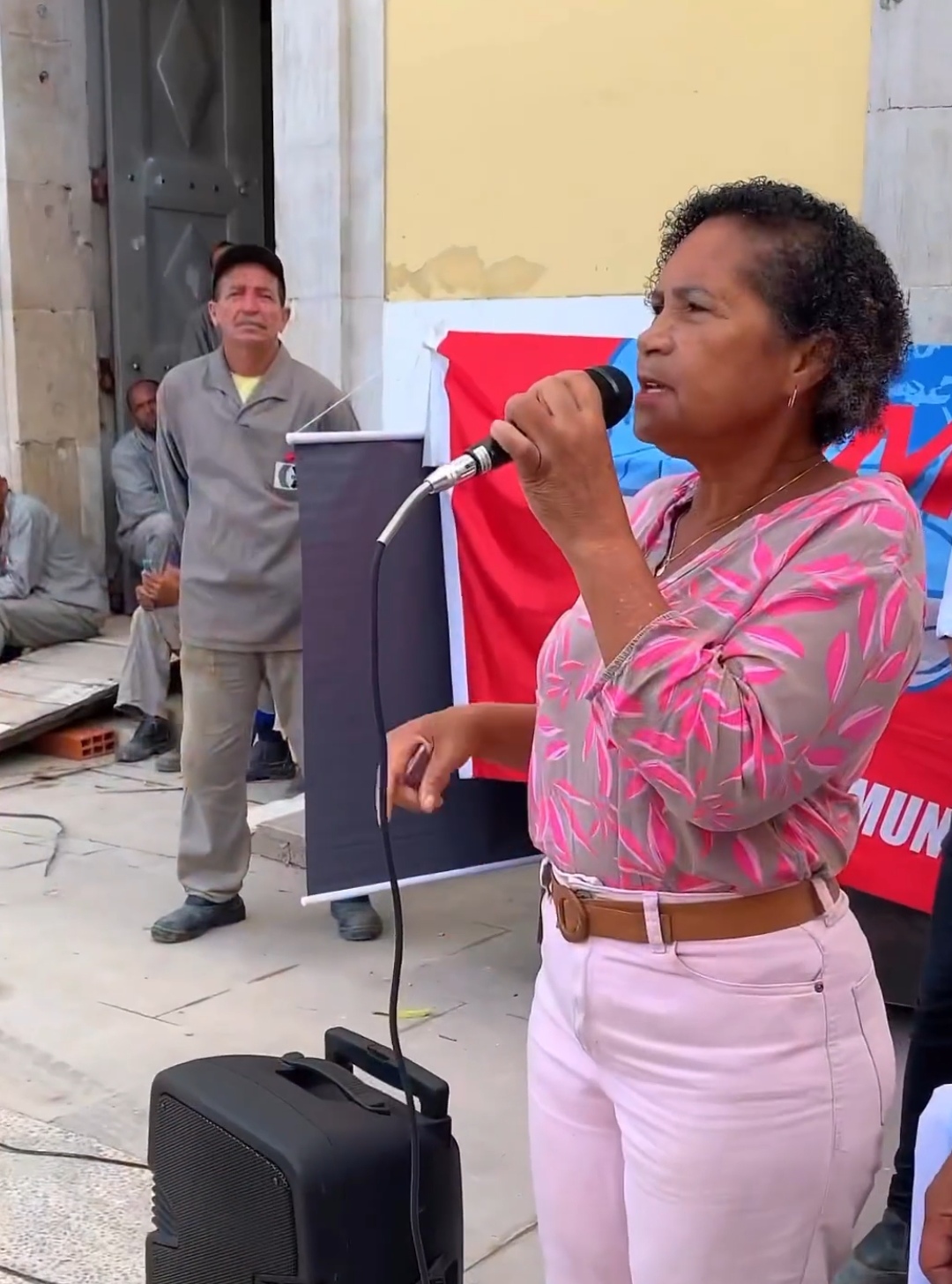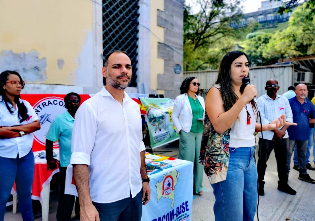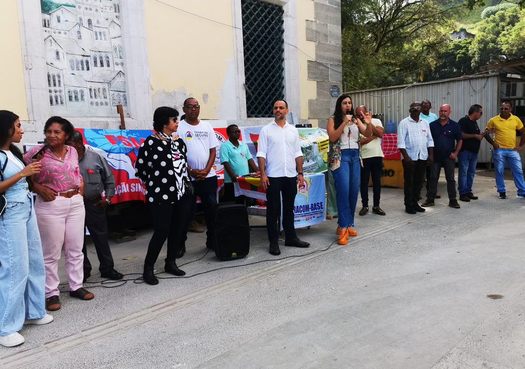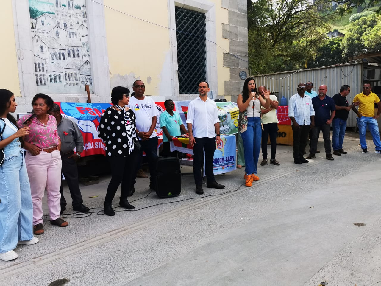 Presentes o presidente do SINTRACOM-BA Carlos Silva e diretores (as) do Sindicato e da Federação, presidente da FLEMACON Lúcia Maia, Juízas do Trabalho Adriana Malta e Rosimeire, vereador Augusto Vasconcelos e representantes do FORUMAT e UITBB.