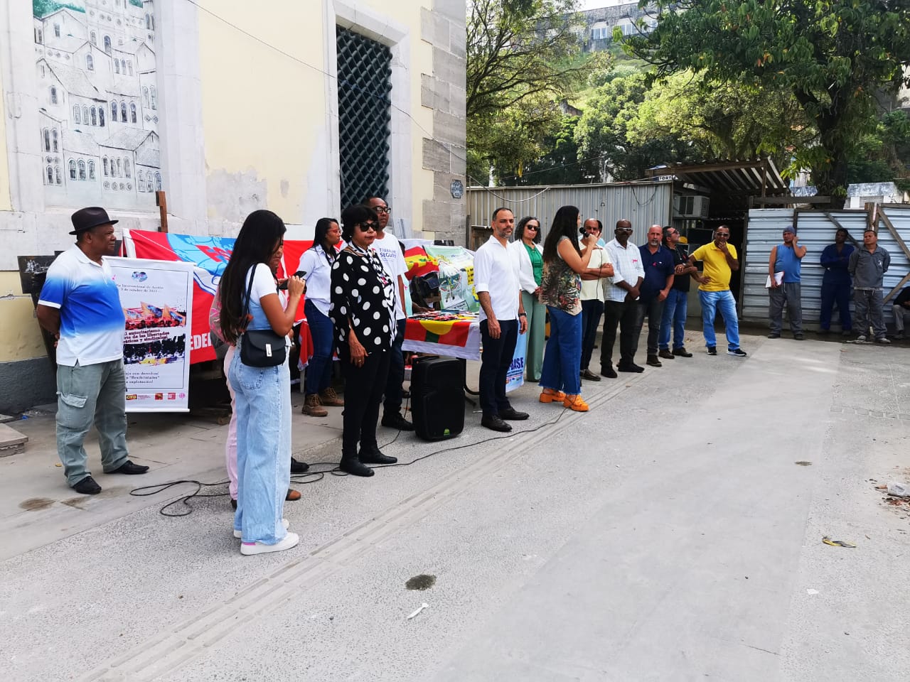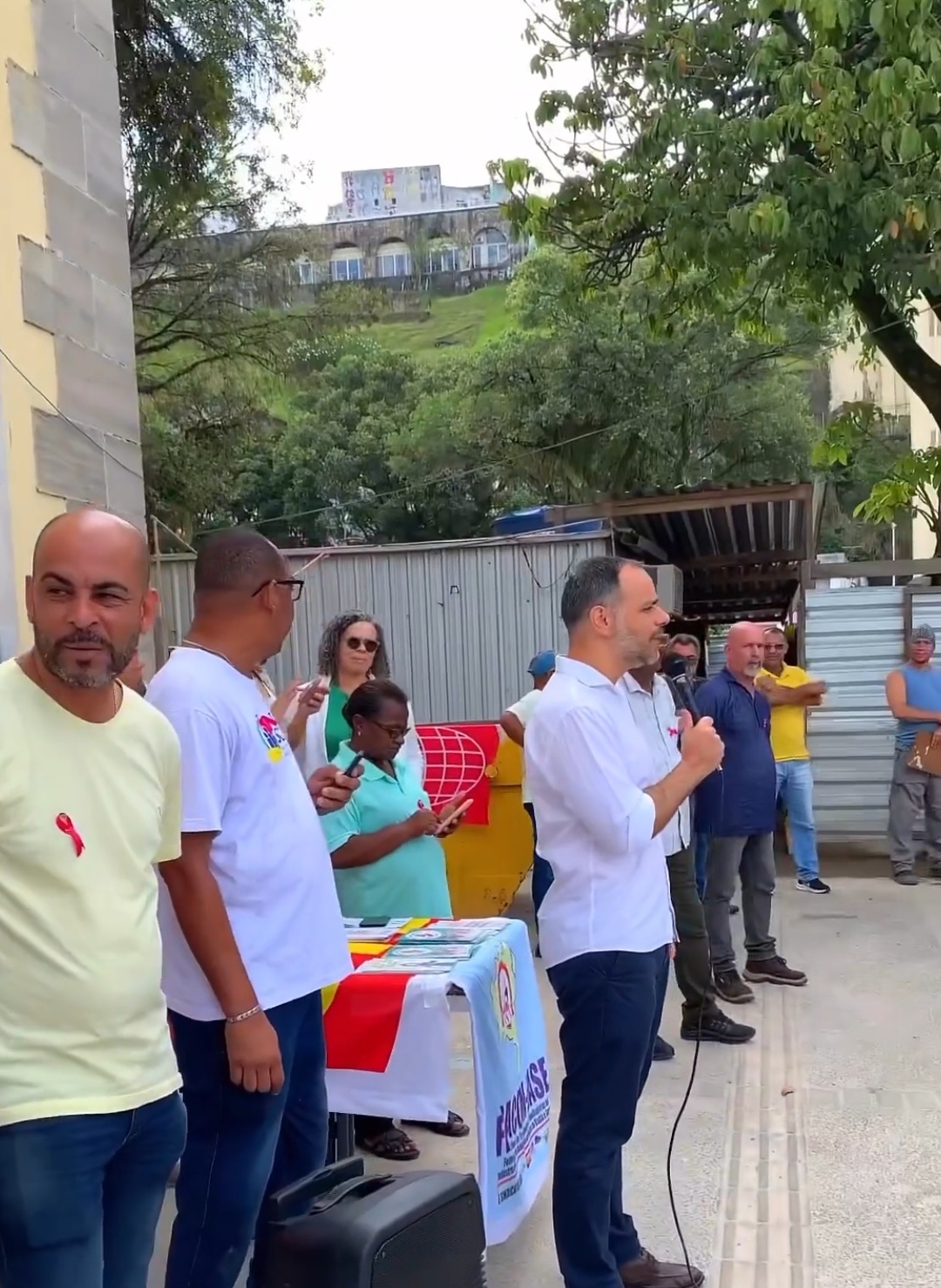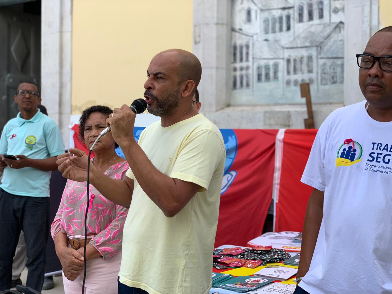 Atividade sobre saúde e segurança reuniu trabalhadores (as) para marcar os 78 anos da FSM, com Dia de Ação promovido pelo SINTRACOM-BA, FETRACOM-BASE, CTB, FLEMACON e entidades filiadas, nesta terça-feira, dia 03/10, em canteiro de obras da Cinzel, no Mercado Modelo, em Salvador.