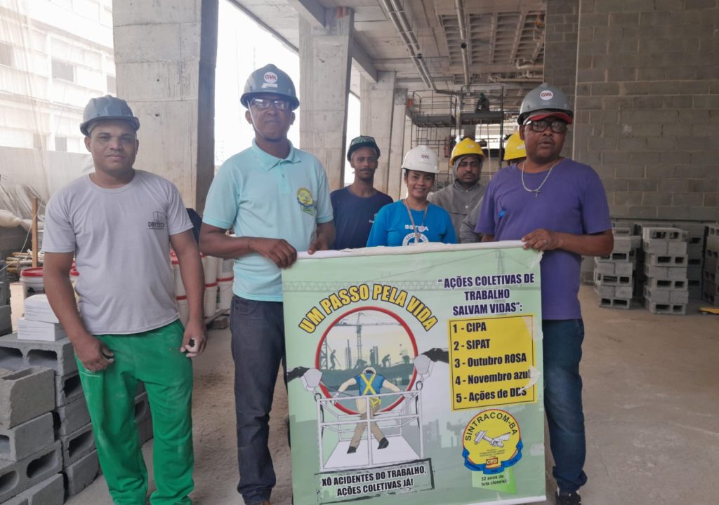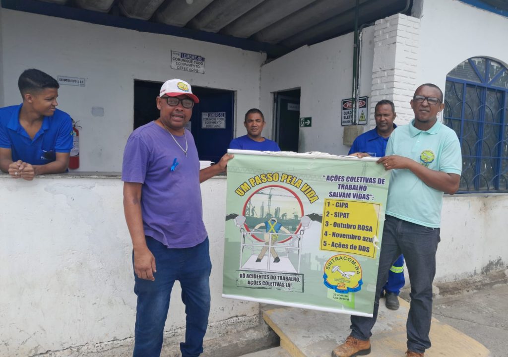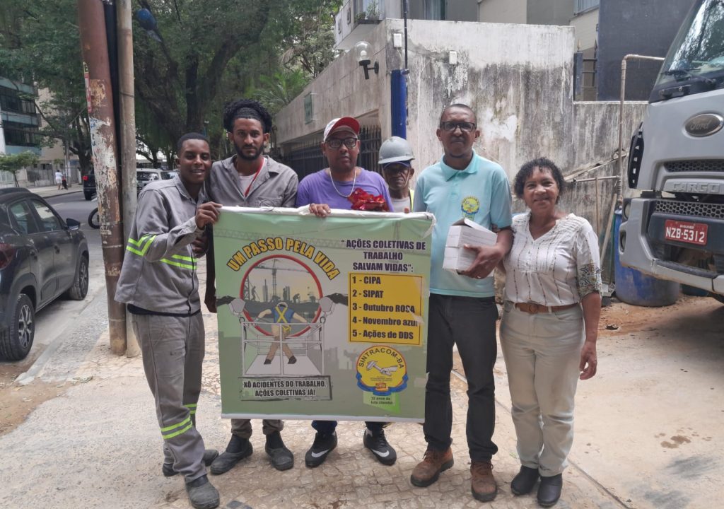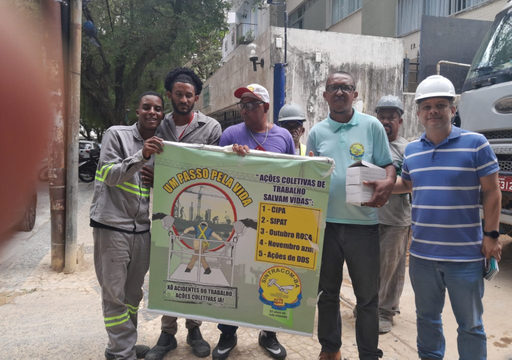Durante este mês, a caravana com diretores do SINTRACOM-BA, da FETRACOM-BASE, FLEMACON e CTB está visitando os canteiros e empresas da construção civil, elétricas e Embasa para levar aos trabalhadores e trabalhadoras as campanhas de prevenção aos acidentes de trabalho “Ações Coletivas Já!” e contra o câncer de próstata “Novembro Azul”.
