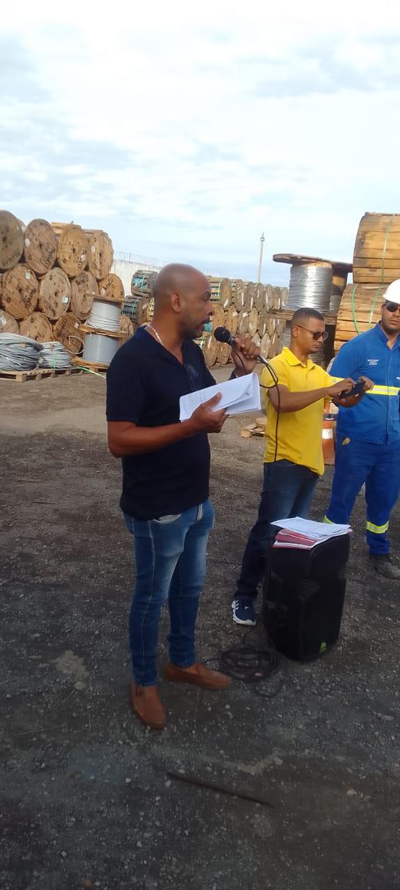 O presidente do SINTRACOM-BA, Carlos Silva, com os diretores Marcos César e Arisandré, participaram na segunda-feira, dia 10/01, do DDS na empresa Eco Elétrica, na região de Irecê.
