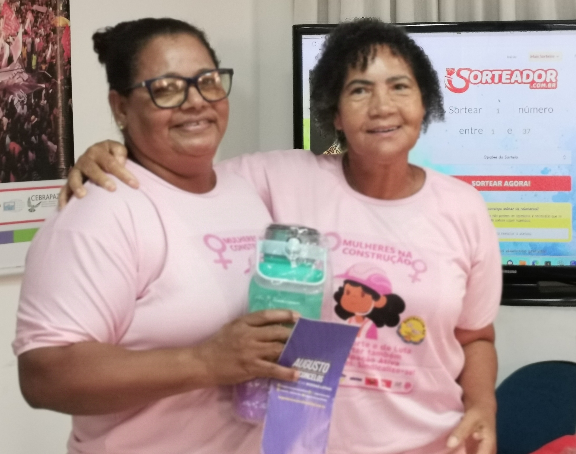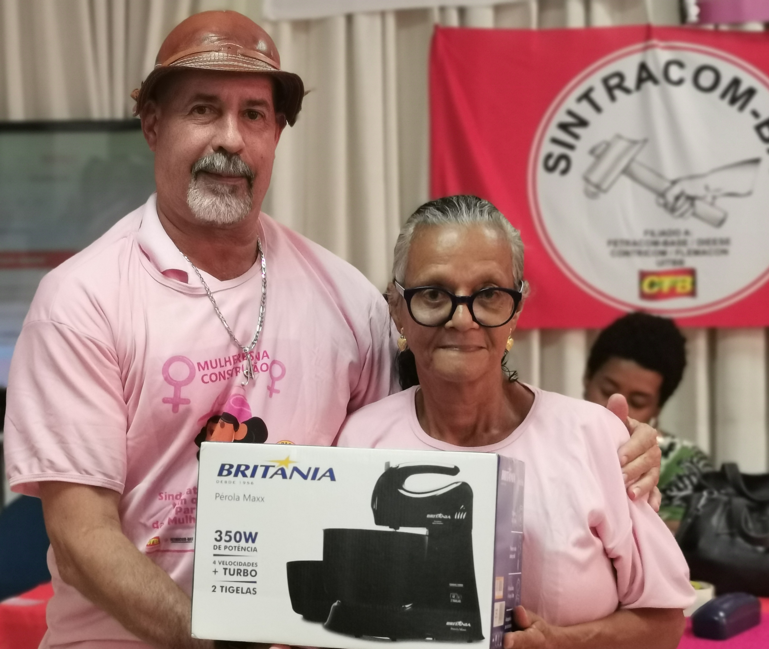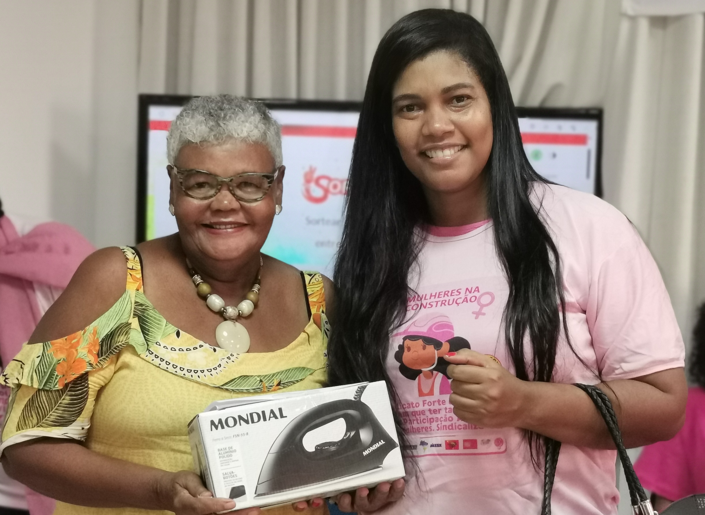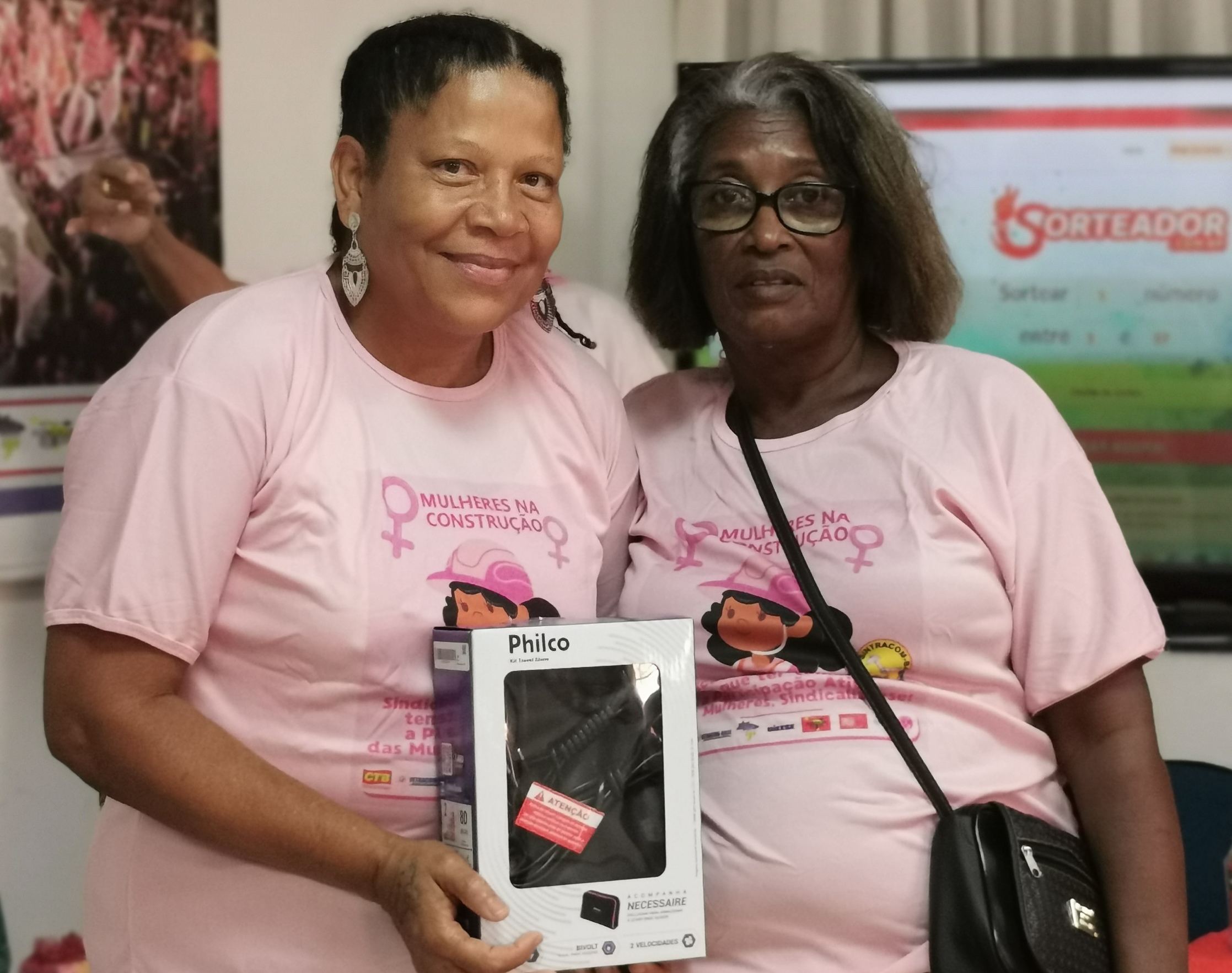 As trabalhadoras e mulheres presentes, no encerramento das palestras sobre as lutas e questões de gênero, participaram do sorteio e foram presenteadas com diversos brindes.