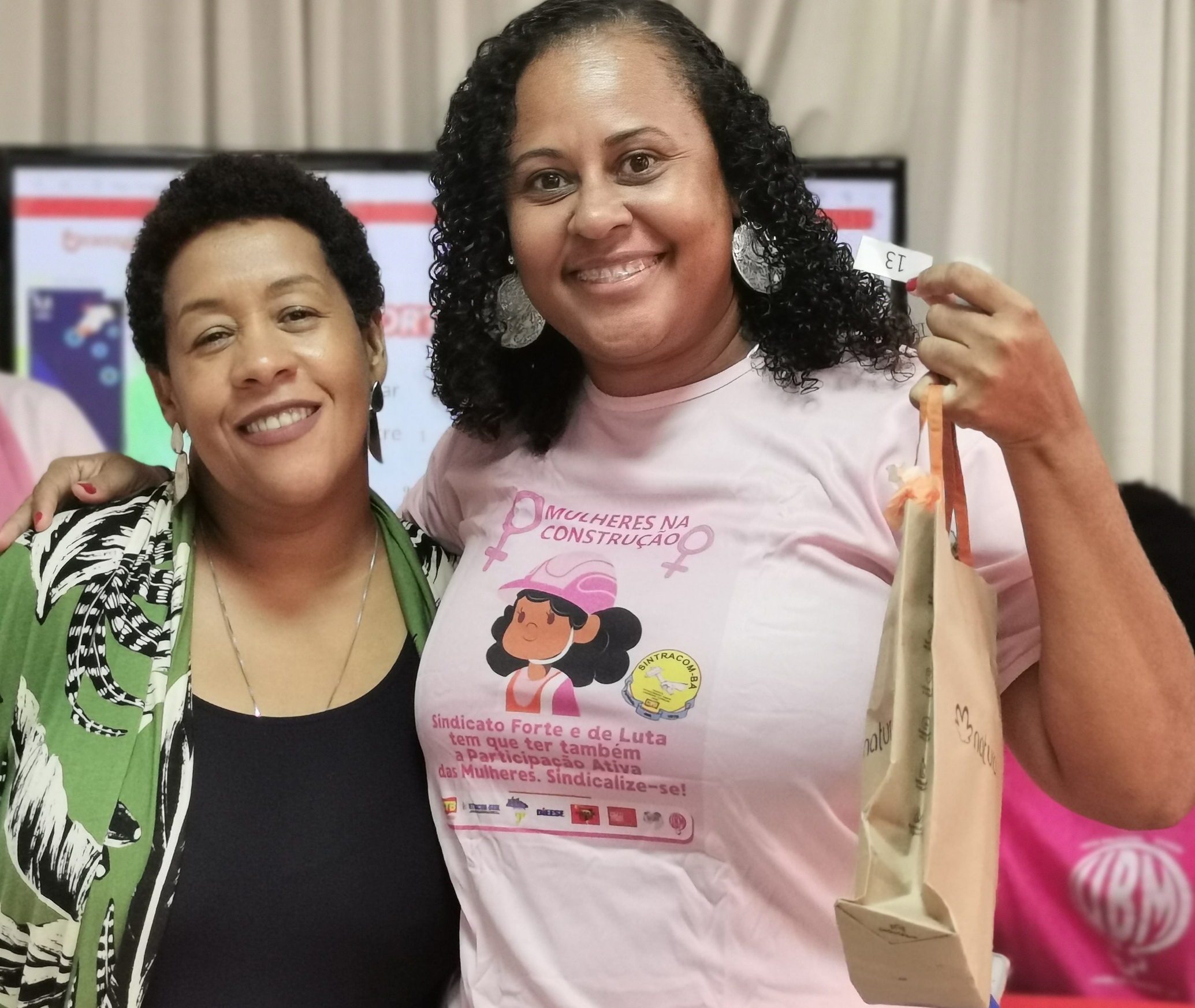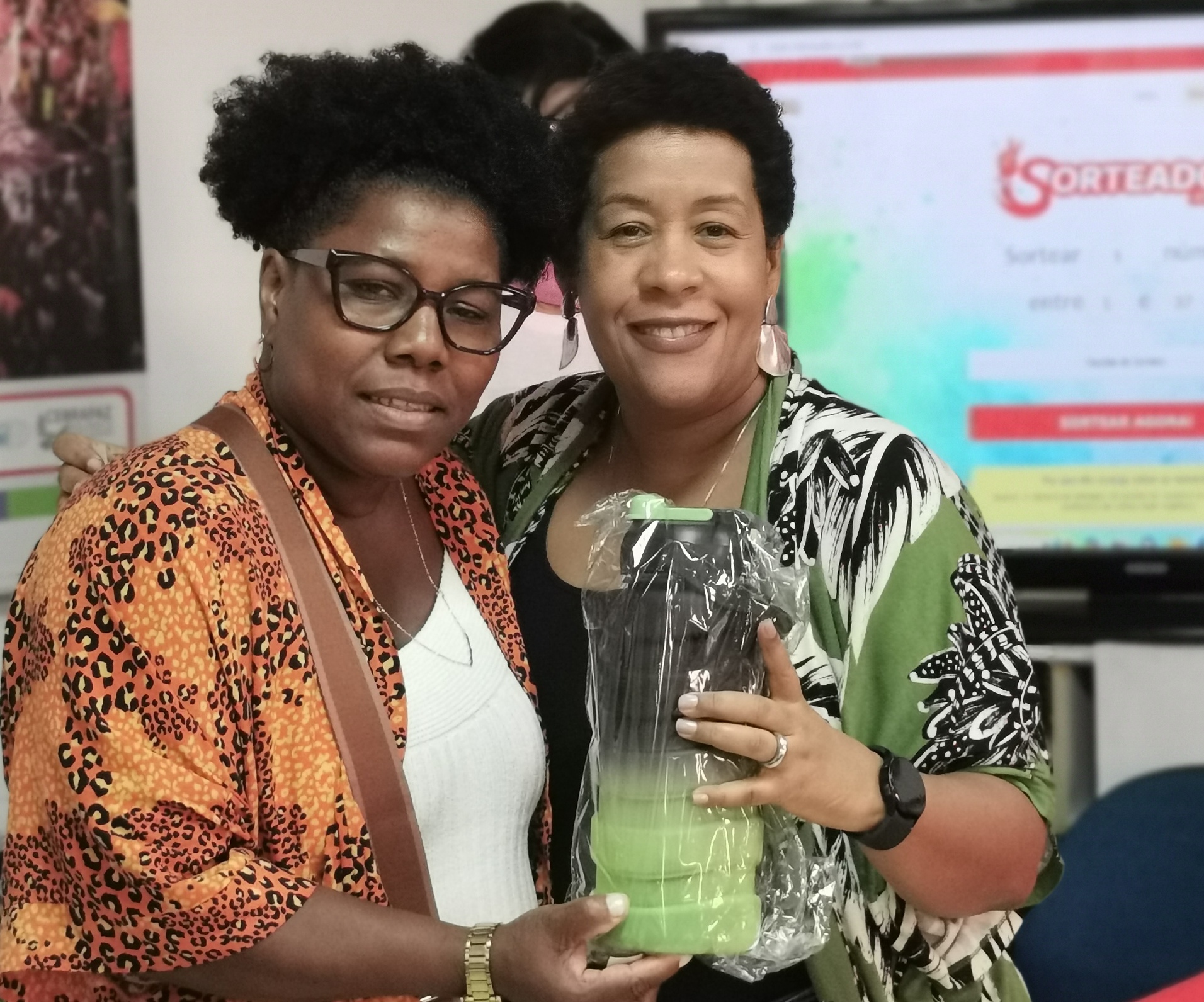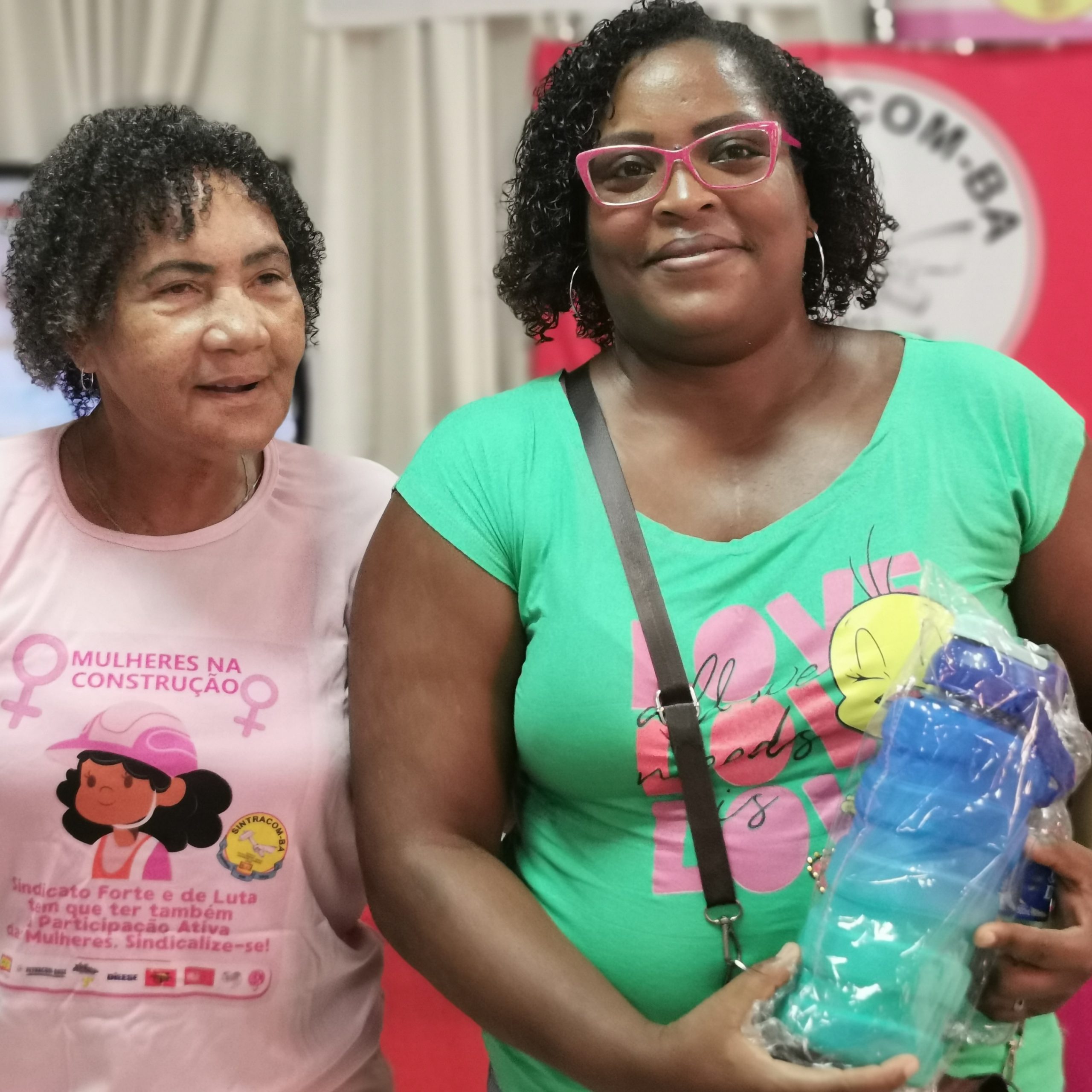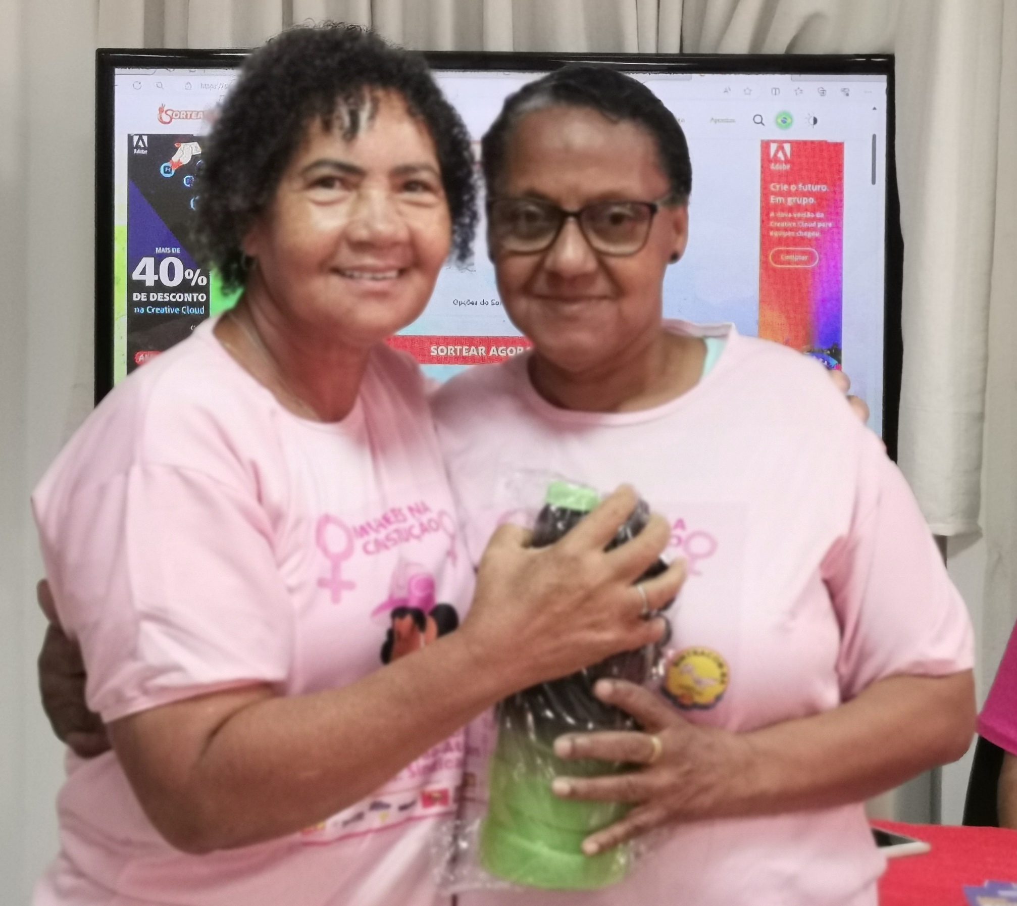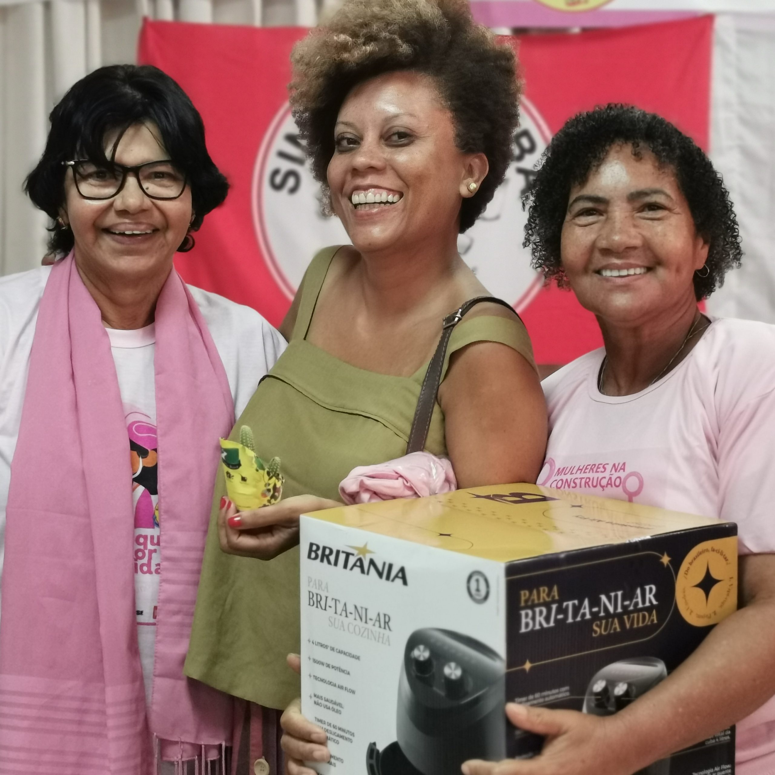 As trabalhadoras e mulheres presentes, no encerramento das palestras sobre as lutas e questões de gênero, participaram do sorteio e foram presenteadas com diversos brindes.