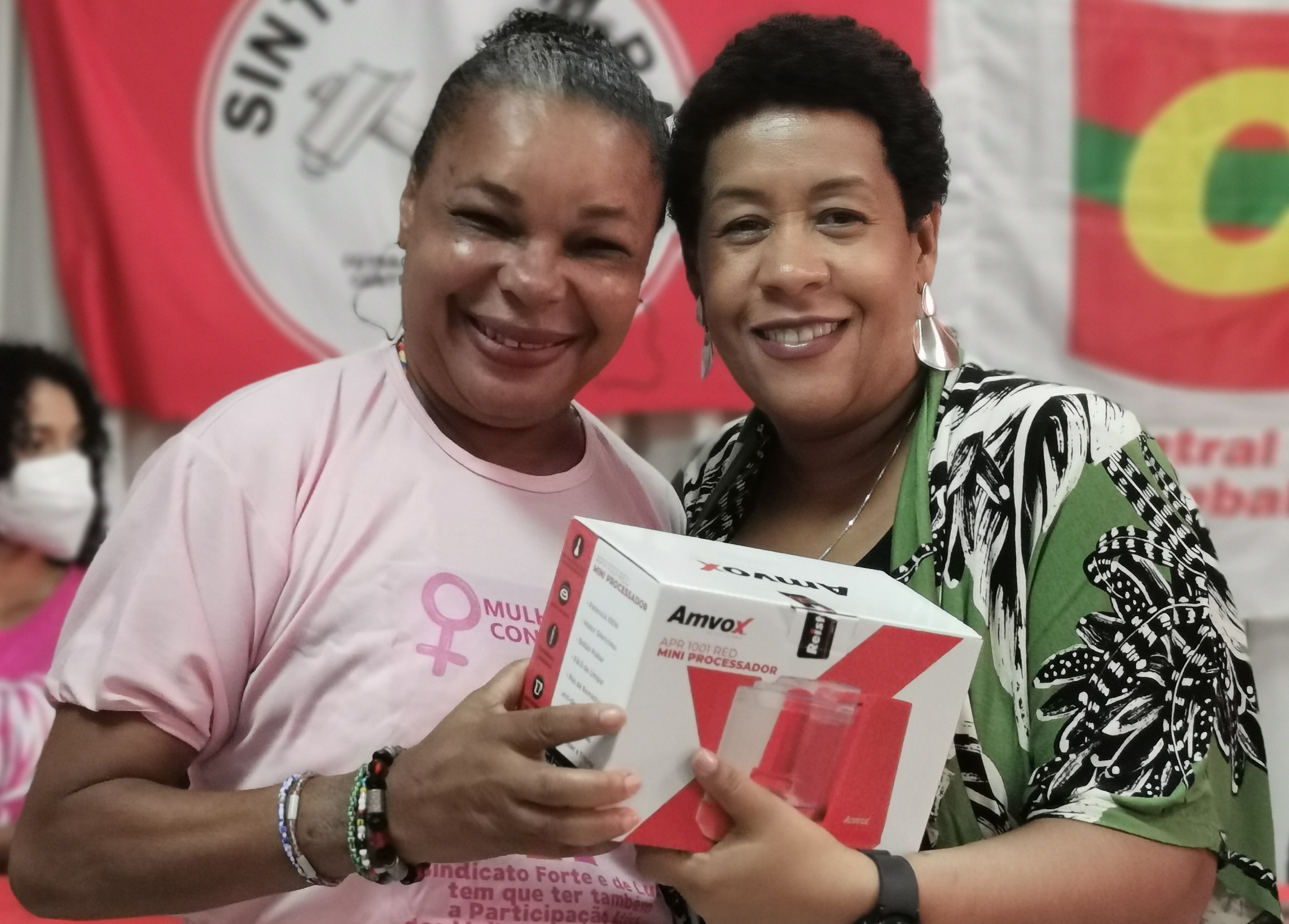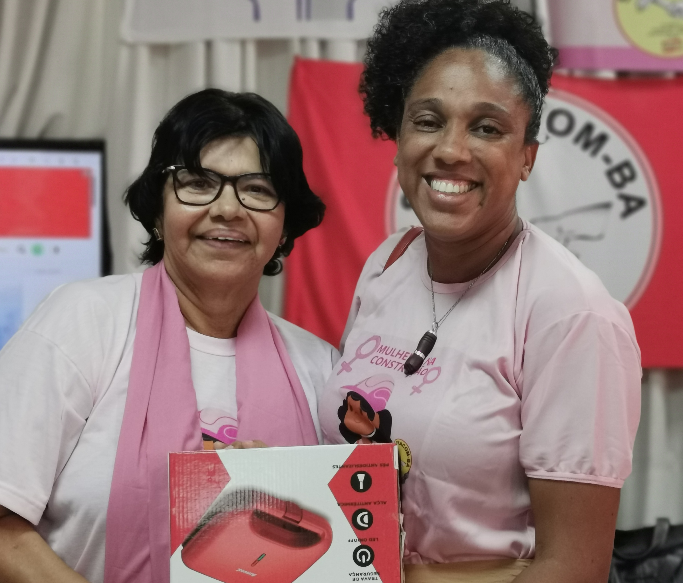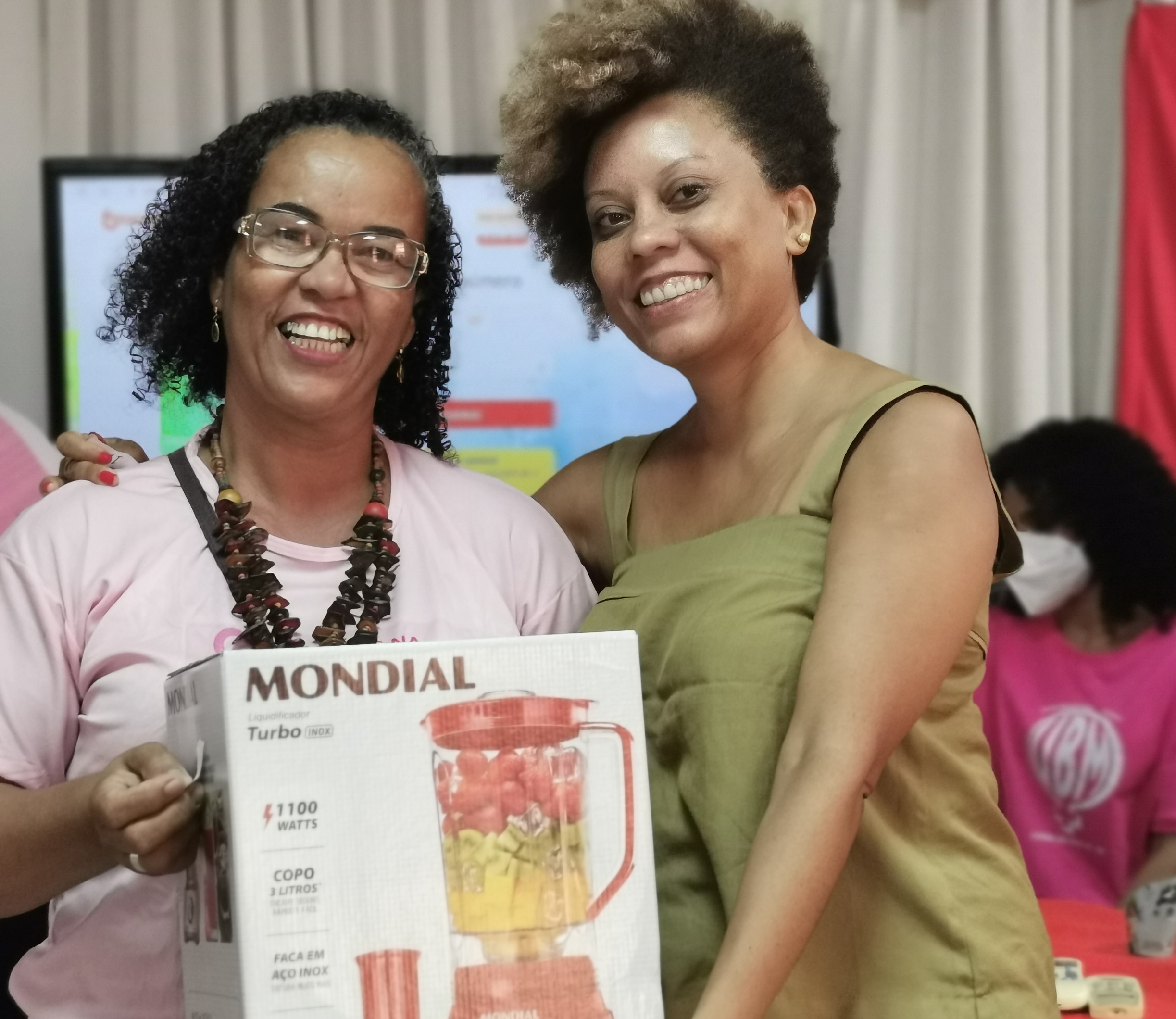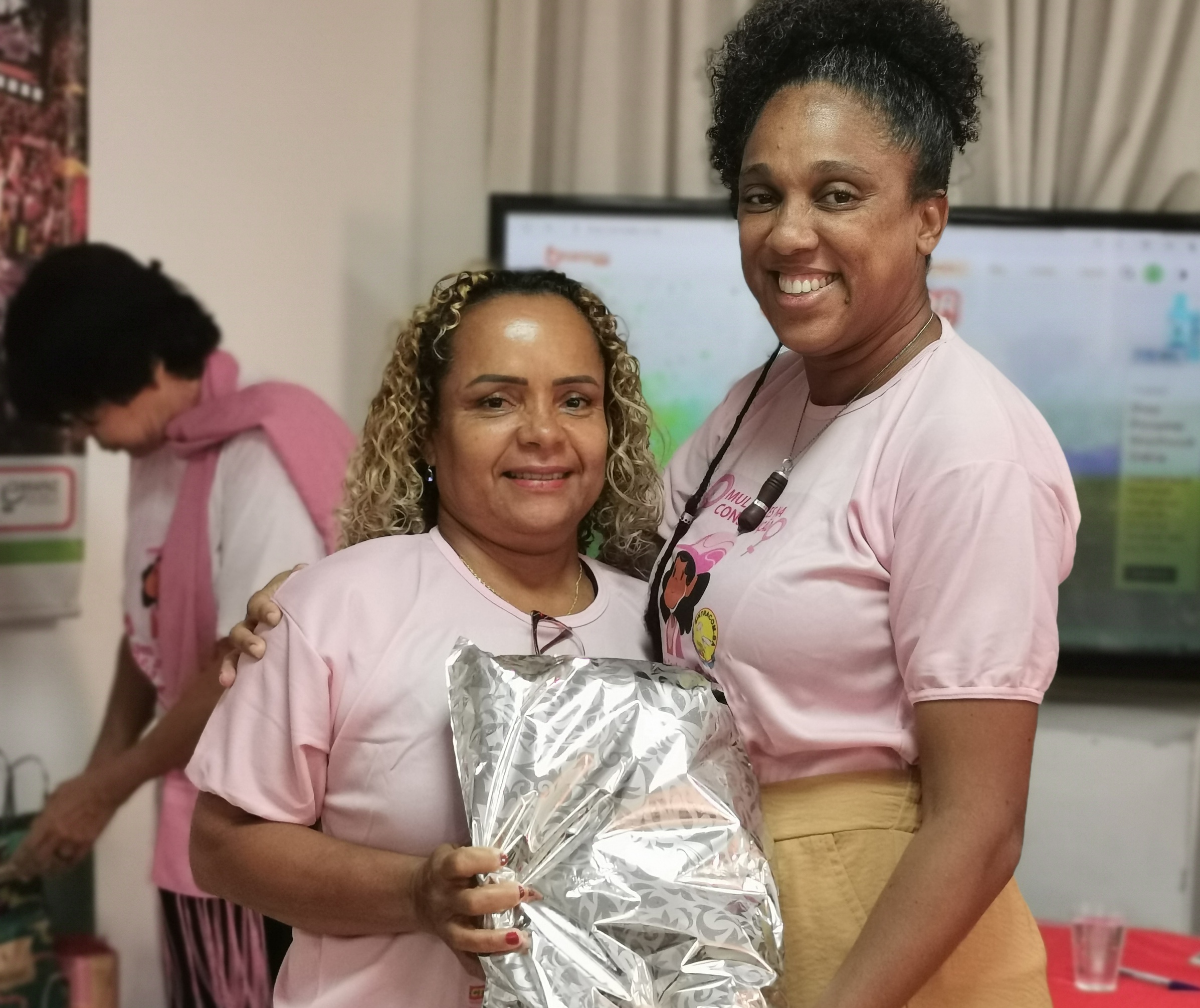 As trabalhadoras e mulheres presentes, no encerramento das palestras sobre as lutas e questões de gênero, participaram do sorteio e foram presenteadas com diversos brindes.