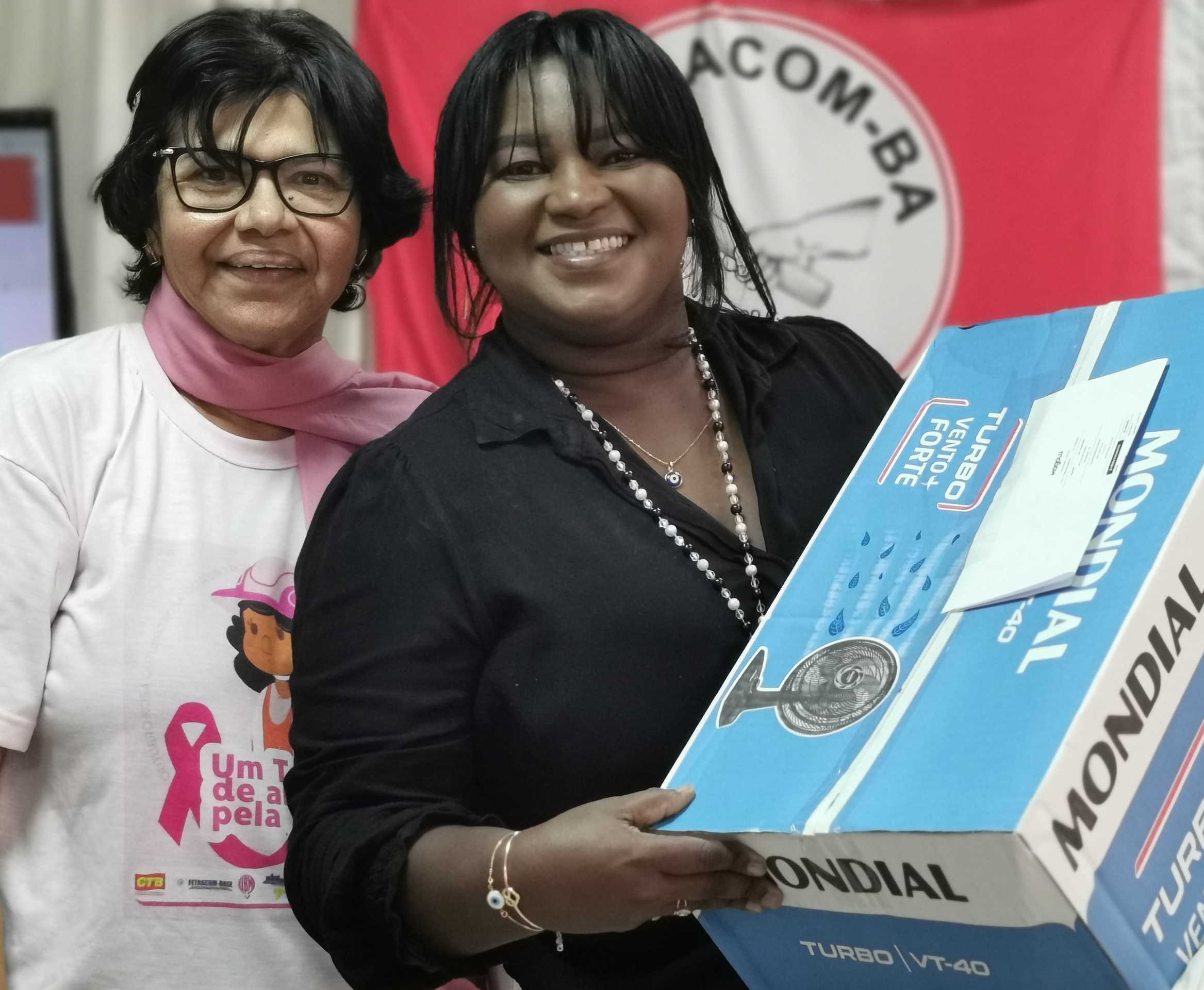 Teve sorteio de brindes, no final da atividade que o SINTRACOM-BA, através da Secretaria de Mulheres, promoveu em sua sede, no dia 09/03, para marcar o Dia Internacional da Mulher, 8 de Março.