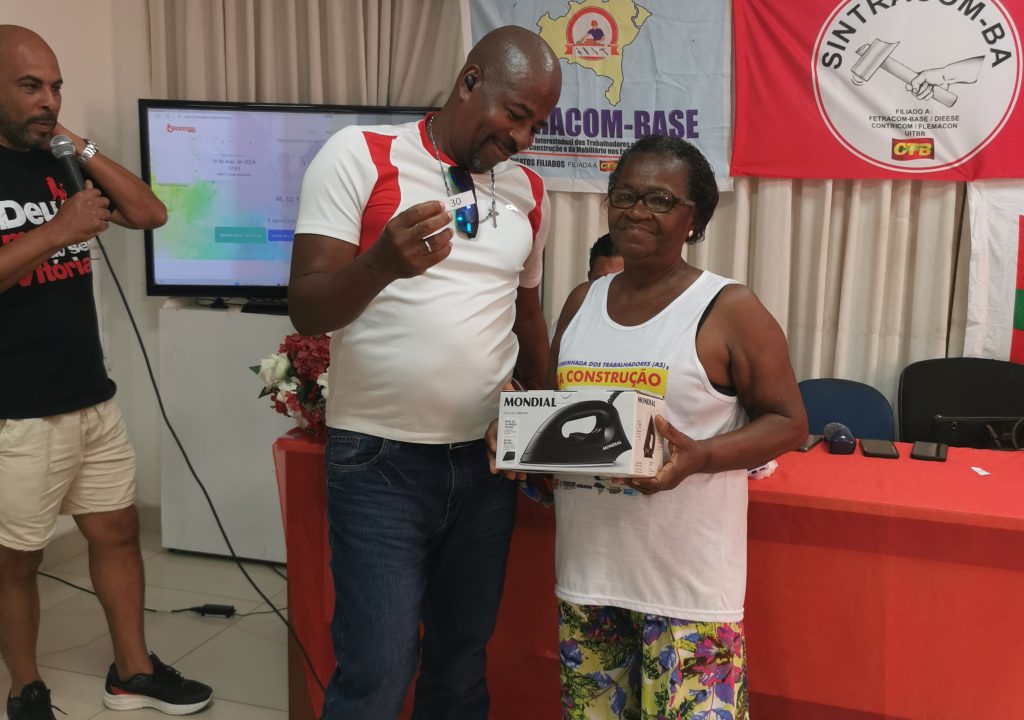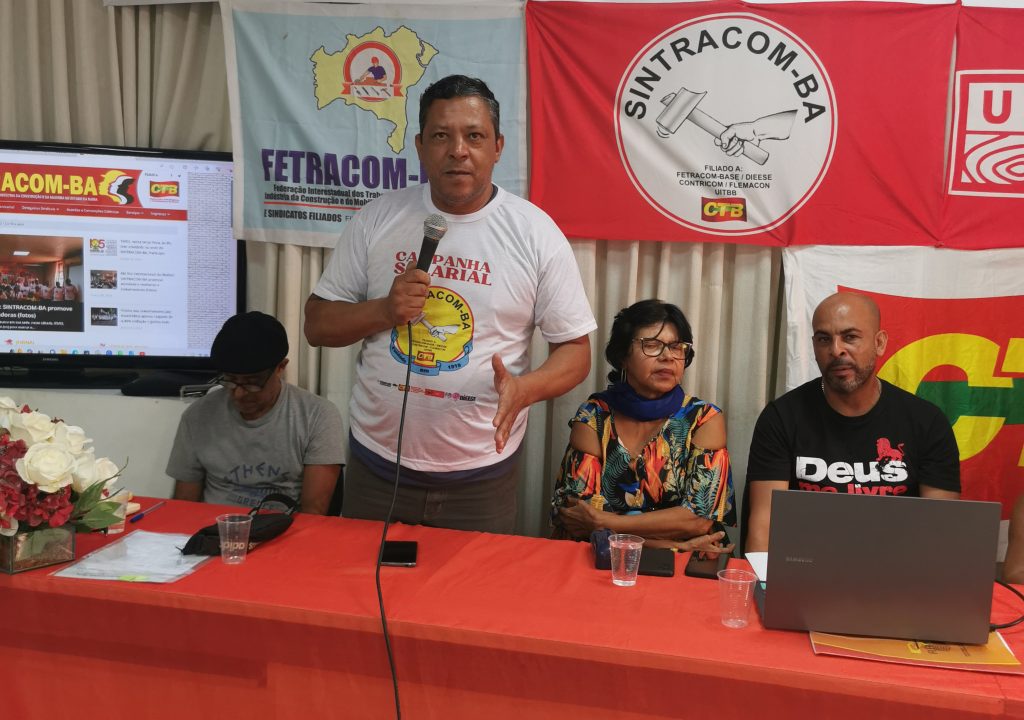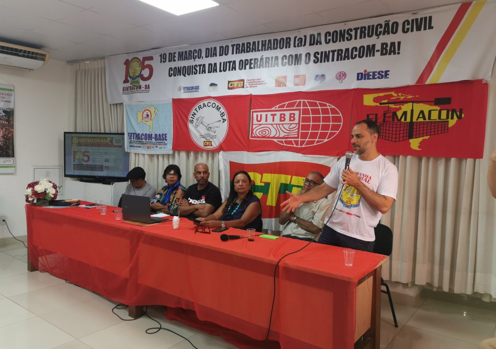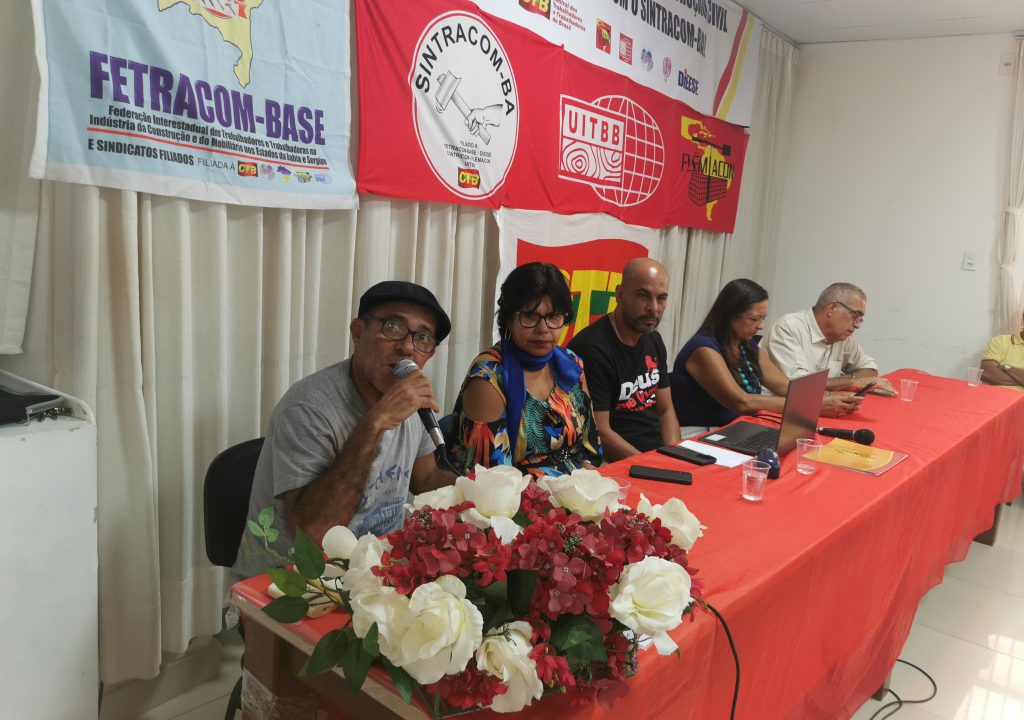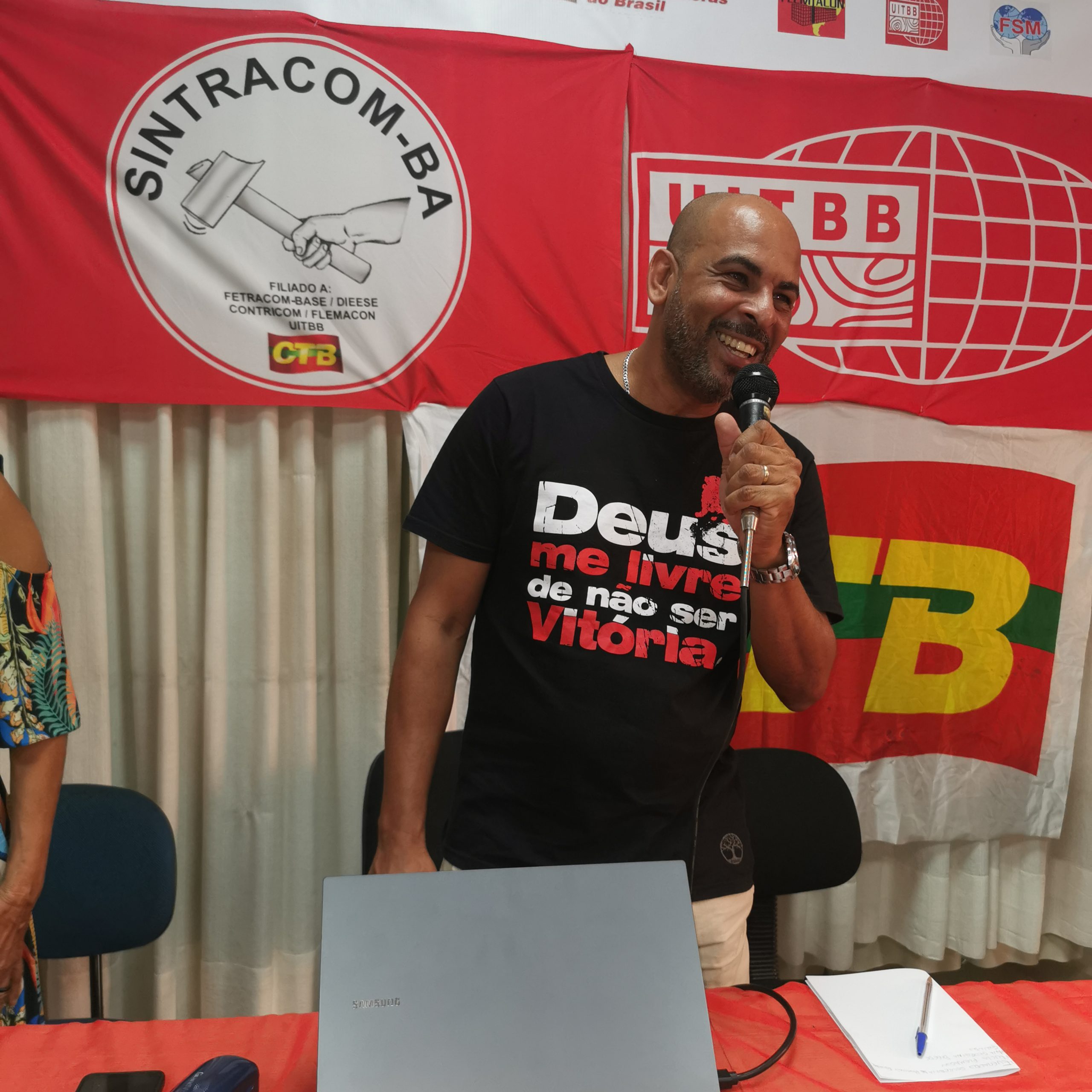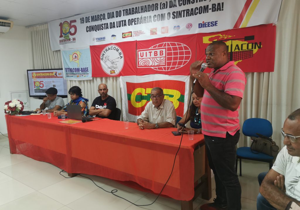 Everaldo Augusto, representante da Sepromi, saudou o SINTRACOM-BA e lembrou da história de lutas da entidade e de sua trajetória política, como ex-sindicalista e presidente da CUT e do Sindicato dos Bancários, e ex-vereador de Salvador. E registrou que ele estava presente na “Revolta dos Peões” e sempre esteve caminhando lado a lado, nas greves, passeatas, mobilizações nos canteiros e assembleias lideradas pelo SINTRACOM-BA.