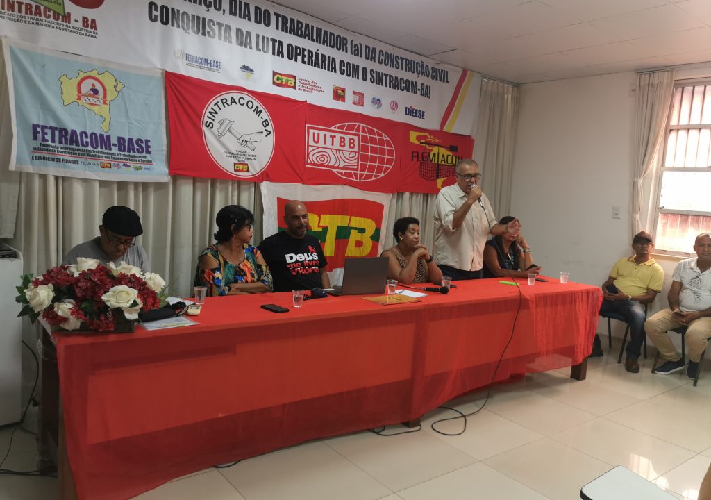 Com o auditório lotado, Carlos Silva fez a abertura, saudou os presentes e santo padroeiro dos operários, e chamou os convidados para compor a mesa: Lúcia Maia, presidente da FLEMACON; Ana Georgina Dias, economista do DIEESE; Everaldo Augusto, ex-vereador de Salvador, representando a secretária da Promoção de Igualdade – Sepromi, Ângela Guimarães; Graça Filizola, representando a deputada federal Alice Portugal; Geraldo Galindo, presidente da Federação Brasil da Esperança; Rosa de Souza, presidente da CTB Bahia; Augusto Vasconcelos, vereador de Salvador; e Adilson Araújo, presidente nacional da central sindical CTB – Central dos Trabalhadores e Trabalhadoras do Brasil.