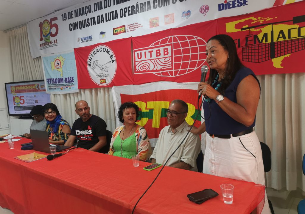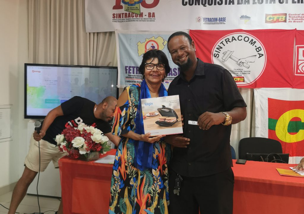 Rosa de Souza, presidenta da CTB Bahia, saudou o Sindicato e disse que não poderia deixar de estar presente no SINTRACOM-BA, nesse dia tão especial para os trabalhadores (as) da construção civil, que têm uma importante presença e representatividade, inclusive no cenário internacional, com a companheira Lúcia Maia, que é a única dirigente da categoria, que preside uma federação latinoamericana e caribenha.