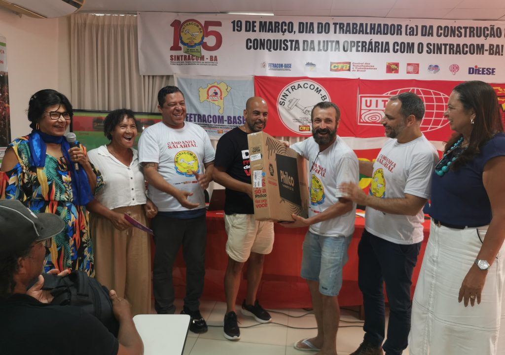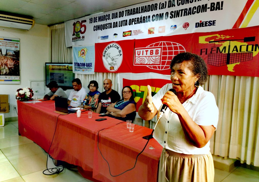 Ana Georgina, economista do DIEESE e parceira do SINTRACOM-BA e da FETRACOM-BASE nas campanhas salariais da categoria e negociações com o patronato, lembrou que dessa vez não estava na mesa para palestrar, mas fazia questão de estar presente numa data tão especial, para trazer o seu “abraço aos trabalhadores (as) da construção pelo seu dia e saudar os 105 anos do SINTRACOM-BA, que construiu uma importante história de lutas e garantiu grandes avanços e conquistas para a categoria”.