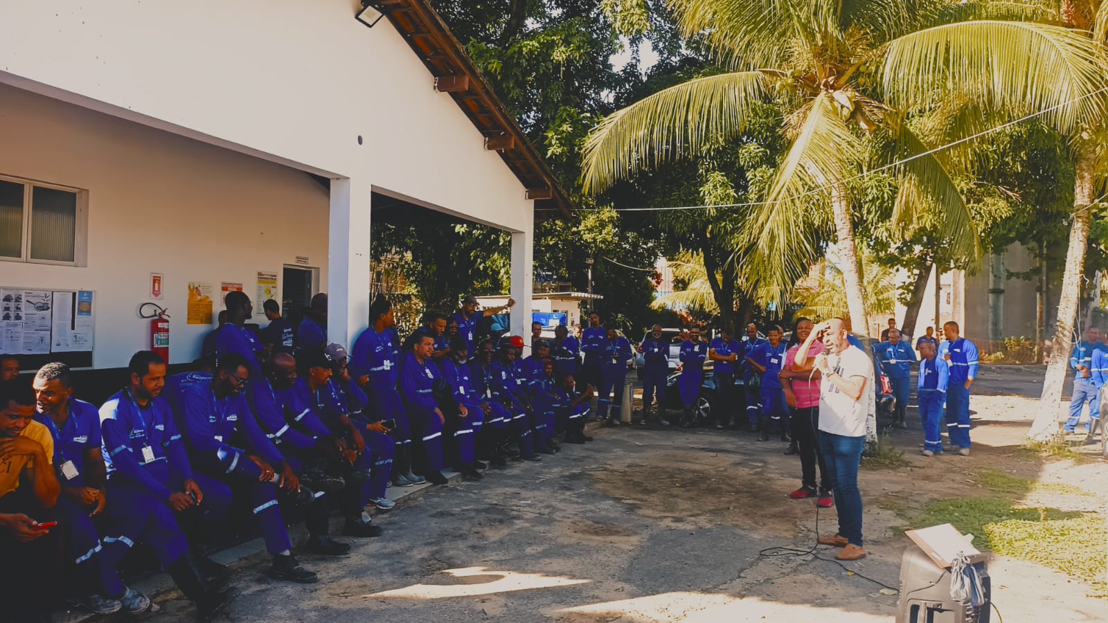 A diretoria do SINTRACOM-BA participou do DDS no Parque da Empresa Bel Pirajá, prestadora de Serviços à Embasa, concessionária de água e saneamento, no bairro de Águas Claras.