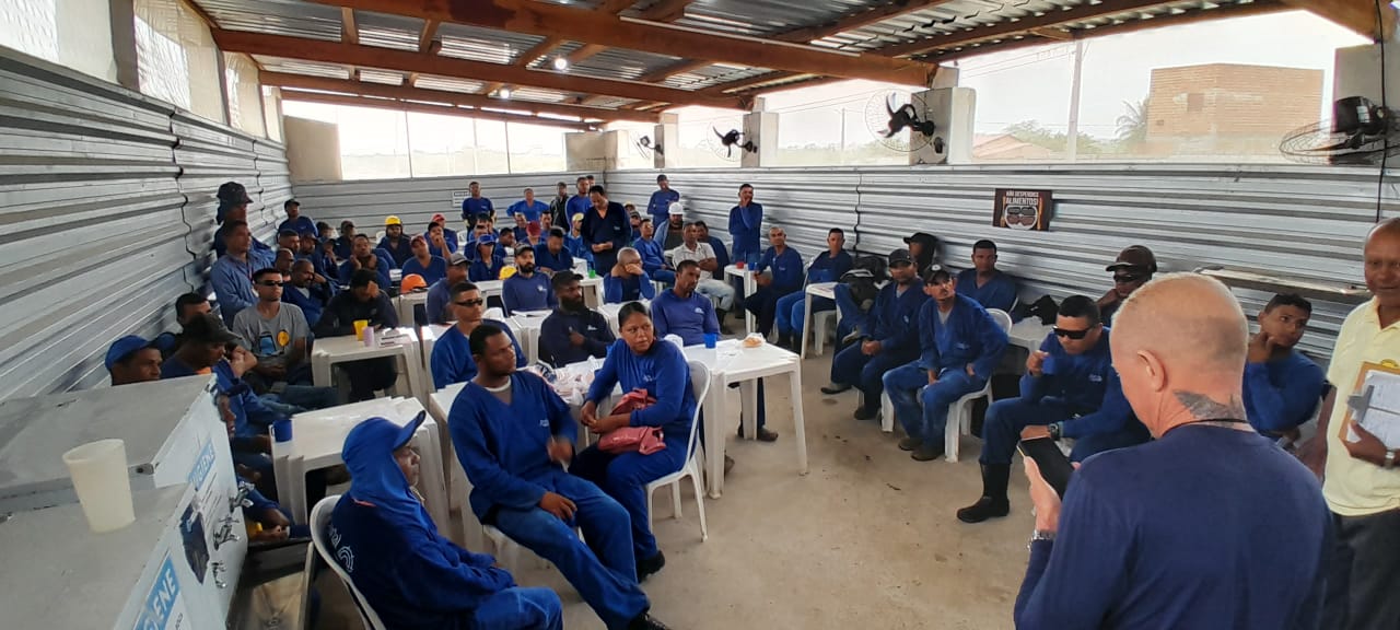 Falaram com os trabalhadores (as) sobre saúde, segurança no trabalho, EPI, EPC e ações coletivas para prevenção de riscos de acidentes de trabalho, direitos da categoria determinados na Convenção Coletiva de Trabalho (CCT) e a importância da sindicalização.