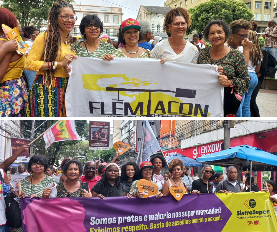 A CTB Bahia levou a palavra de ordem “Saia de baixo com seu preconceito que a gente vai construir um mundo melhor. No Julho das Pretas: viva as trabalhadoras negras, latino-americanas e caribenhas”.