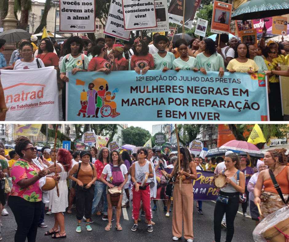 A Marcha faz parte da agenda coletiva da 12ª edição do Julho das Pretas, que reúne as companheiras nesse dia de luta e resistência, regado com declamação de poesias, cantorias e, claro, não pode faltar a falação sobre as bandeiras de luta e os motivos de estarem em marcha contra o racismo, o machismo, a misoginia, a homofobia, o assédio moral e exista, e todo tipo de preoconceitos. E em defesa dos direitos trabalhistas e sociais, por reparação e pelo bem viver.