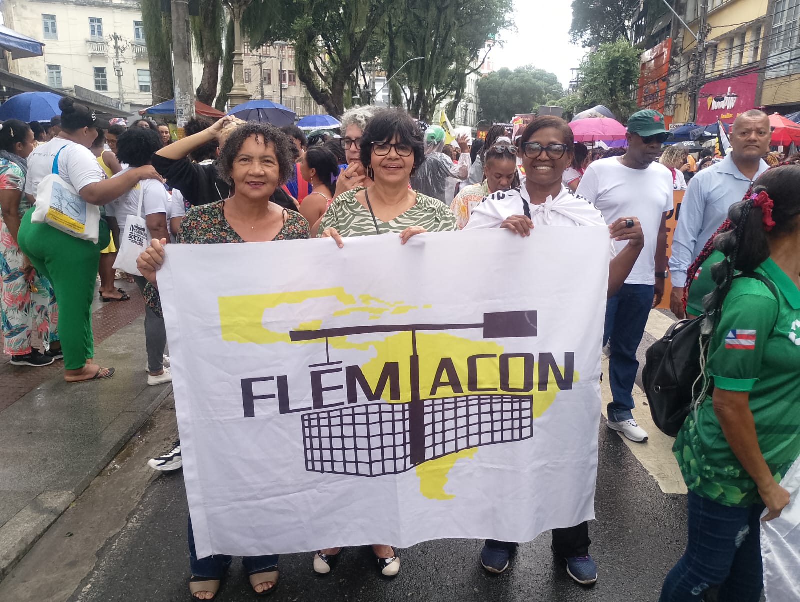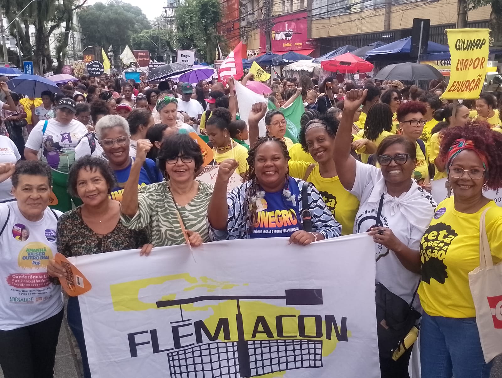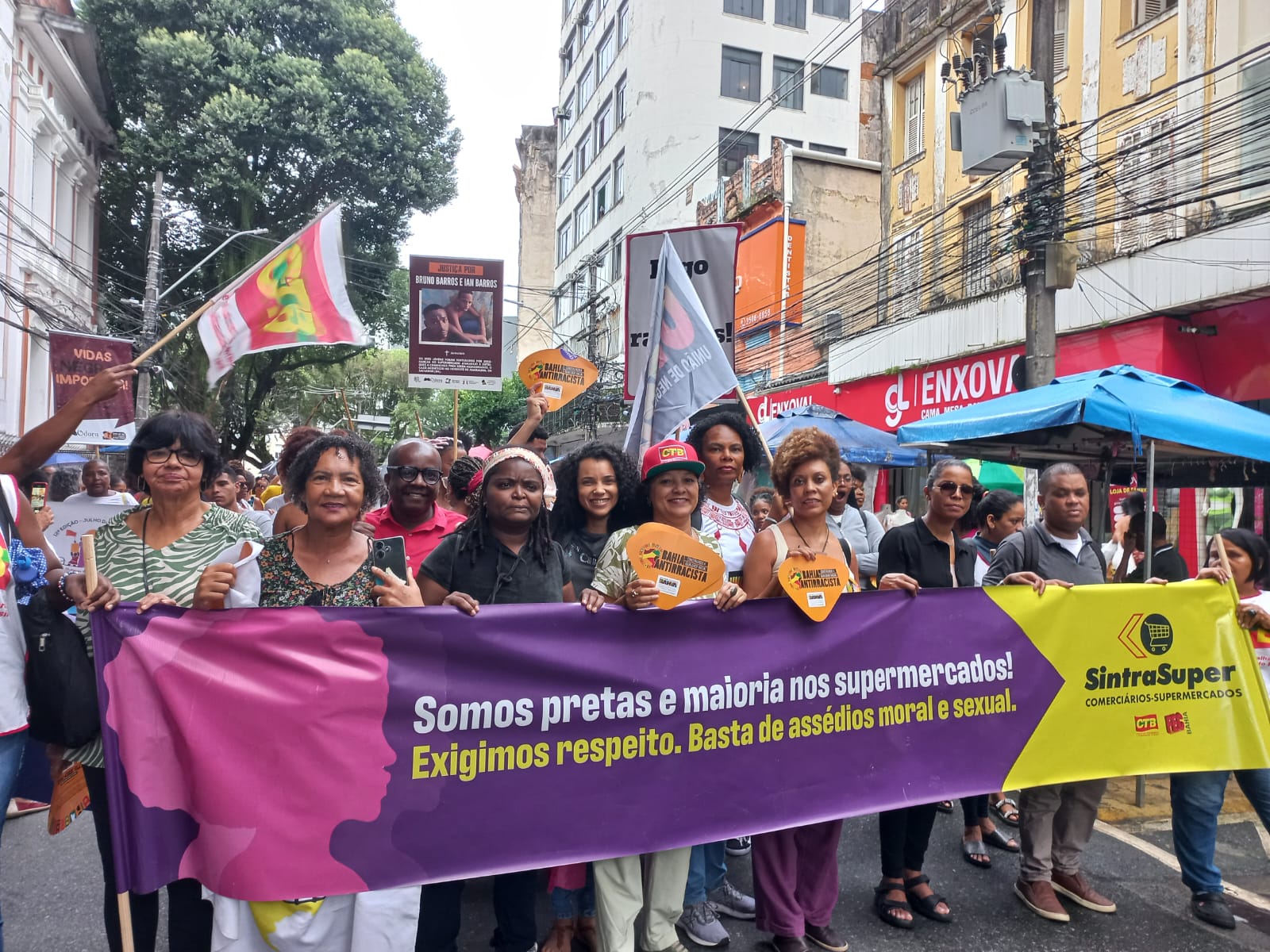 A Marcha das Mulheres Negras da Bahia por Reparação e Bem Viver saiu da Piedade e foi até o Terreiro de Jesus, com a forte presença das trabalhadoras da construção, representadas pelas companheiras Lúcia Maia diretora do SINTRACOM-BA e presidente da FLEMACON e Sonia Maria diretora de Mulheres do SINTRACOM-BA.