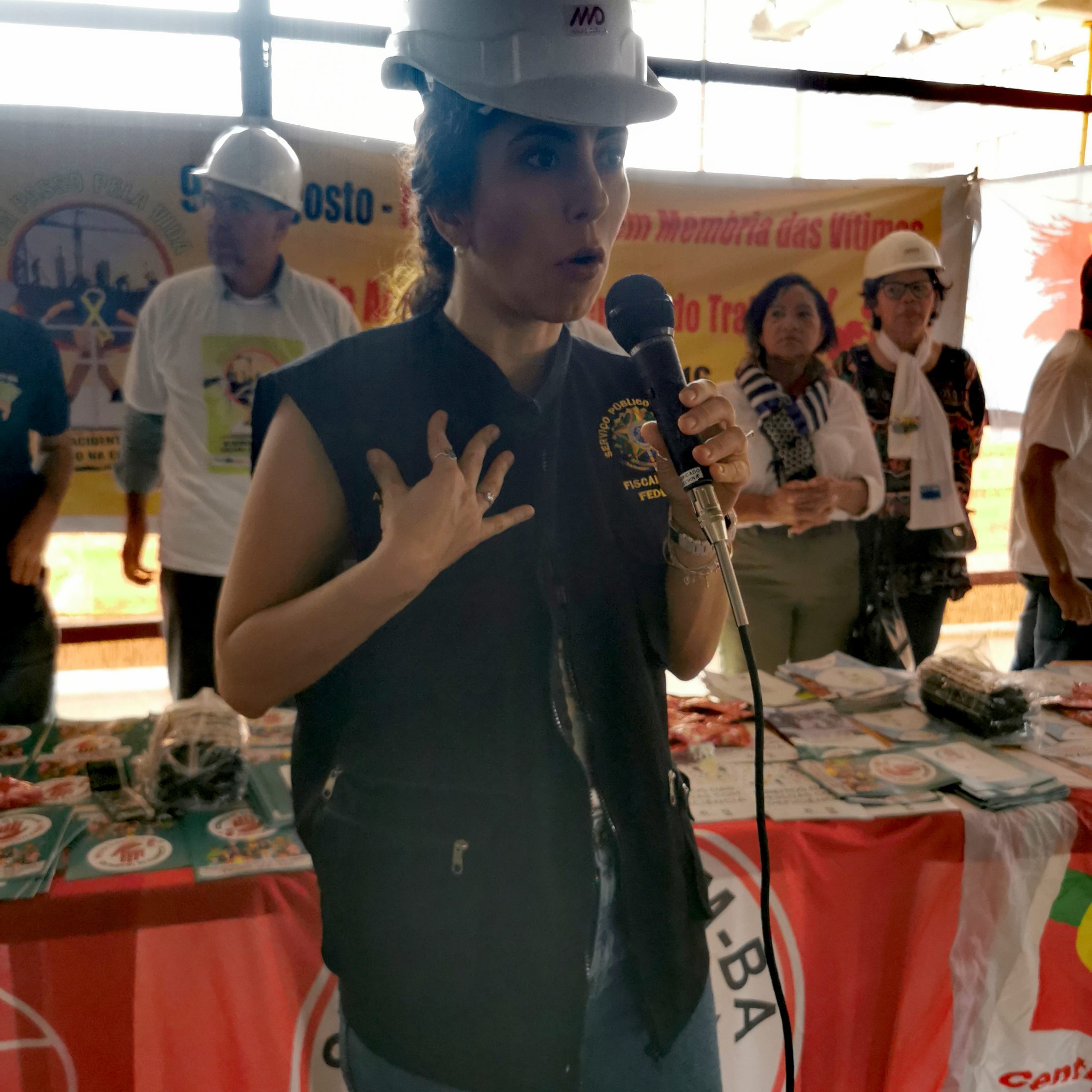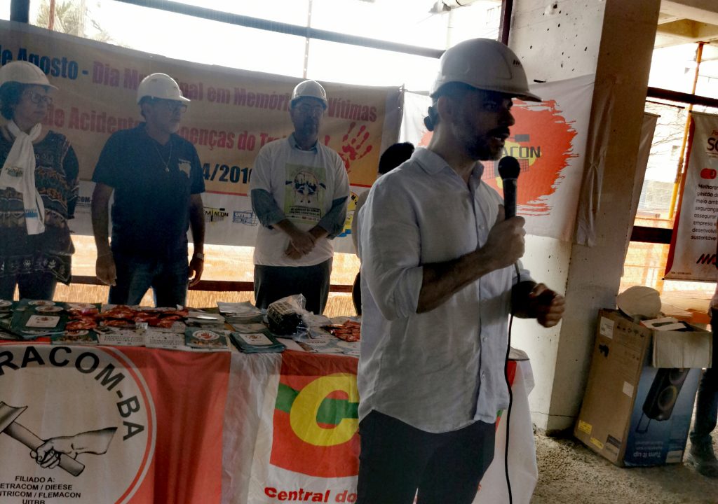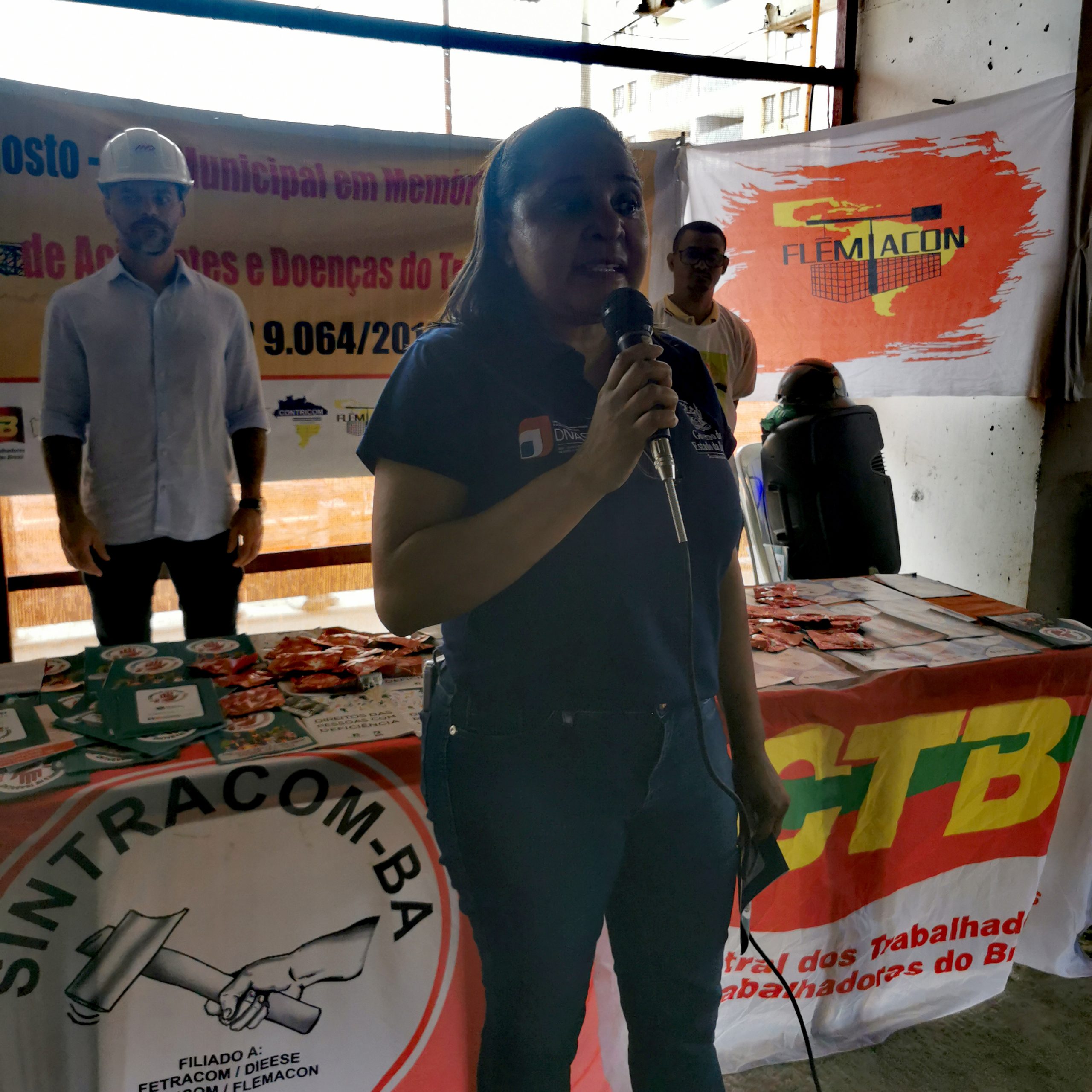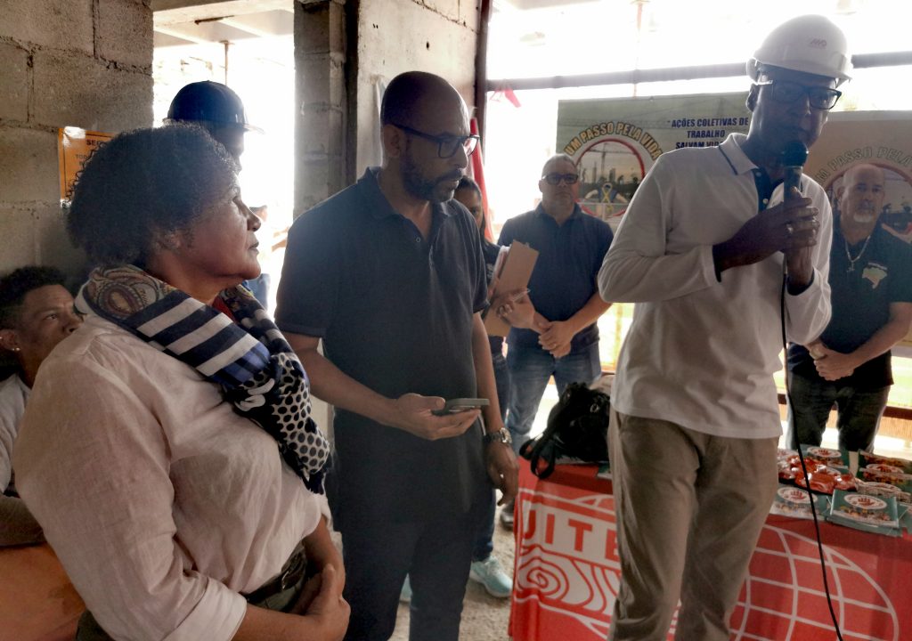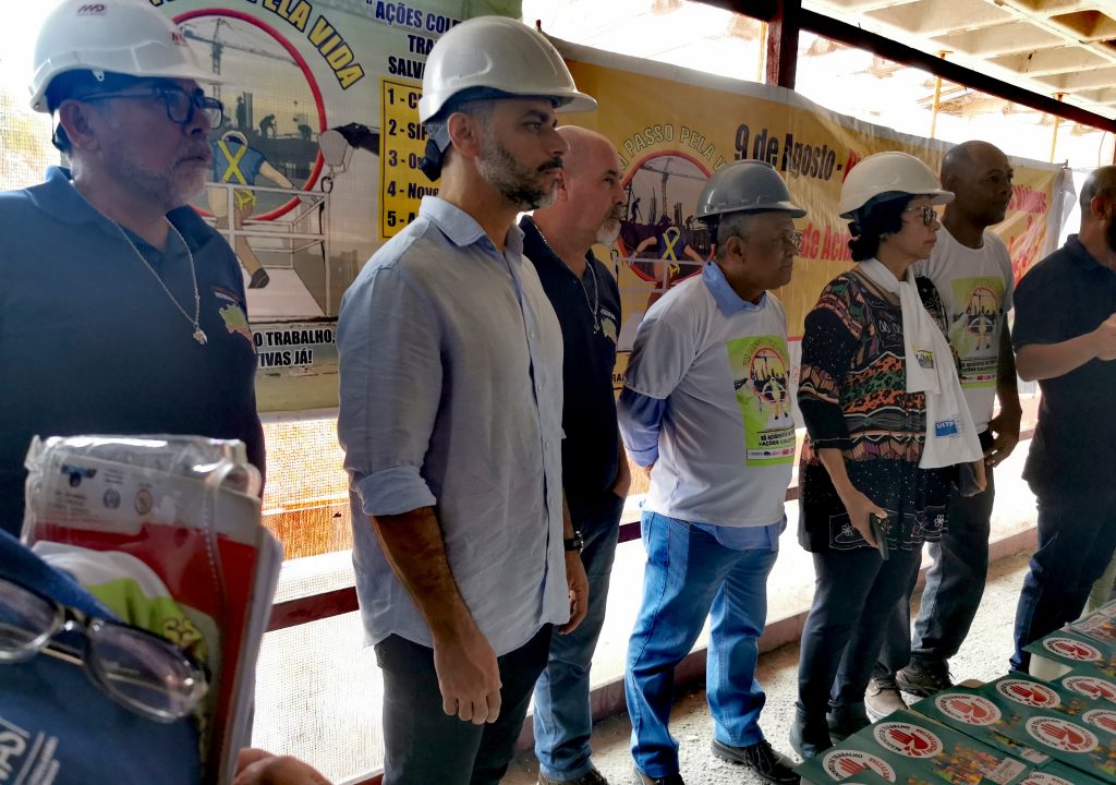 Presentes também, o diretor de Saúde e Segurança do SINTRACOM-BA Arilson Ferreira, vereador Augusto Vasconcelos (PCdoB), presidenta da Federação Latino-Americana e Caribenha dos Trabalhadores da Construção, Madeira e Materiais de Construção Lúcia Maia, auditor Fiscal do Trabalho Mário Luiz Diniz, presidente da FETRACOM-BASE Edson Cruz, diretor da FETRACOM-BASE e da UITBB Raimundo Brito, Gildete Britto da SESAT e FORUMAT, Jerônimo Silva da CTB Bahia, auditora fiscal do Trabalho Flávia, engenheiro Danilo e auxiliar de engenharia Daiane (MD), além dos diretores do SINTRACOM-BA Sônia Maria (Mulheres), Florisvaldo Bispo (1º Secretário), Arisandré Estrela (Jurídico), Airaldo Azevedo, Antonio Marcos e Laurindo Pereira, e demais entidades Confederação Contricom,  Departamento Intersindical de Estatística e Estudos Socioeconômicos – DIEESE, União Brasileira de Mulheres – UBM e Federação Sindical Mundial – FSM.