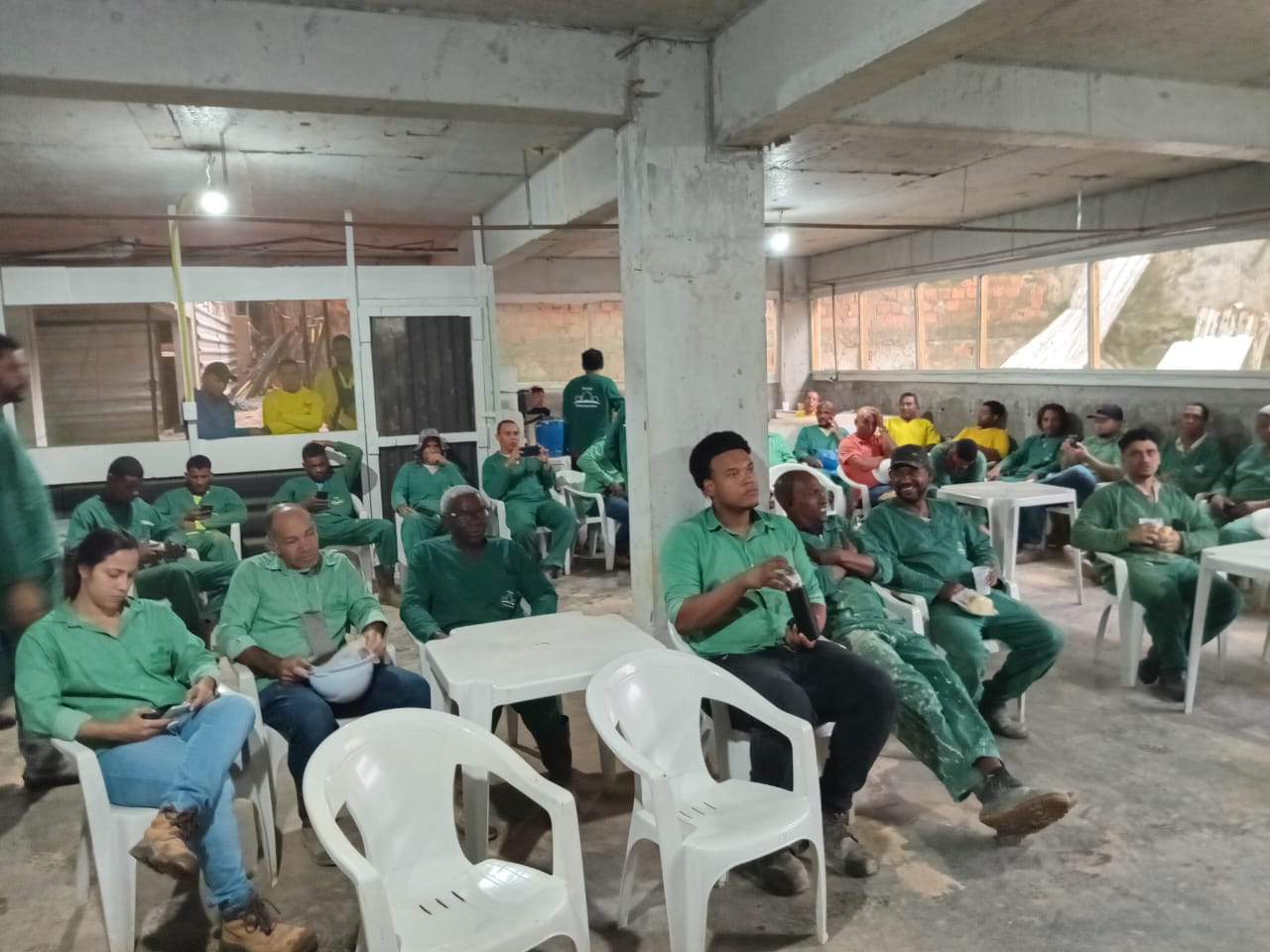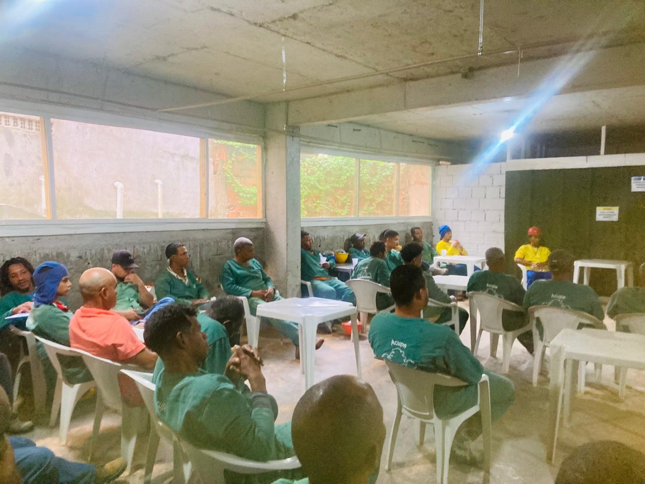 Na manhã de hoje, 29/08, o SINTRACOM-BA participou do DDS com os trabalhadores e trabalhadoras do canteiro de obra da empresa Holtz, no bairro Acupe de Brotas, em Salvador.
