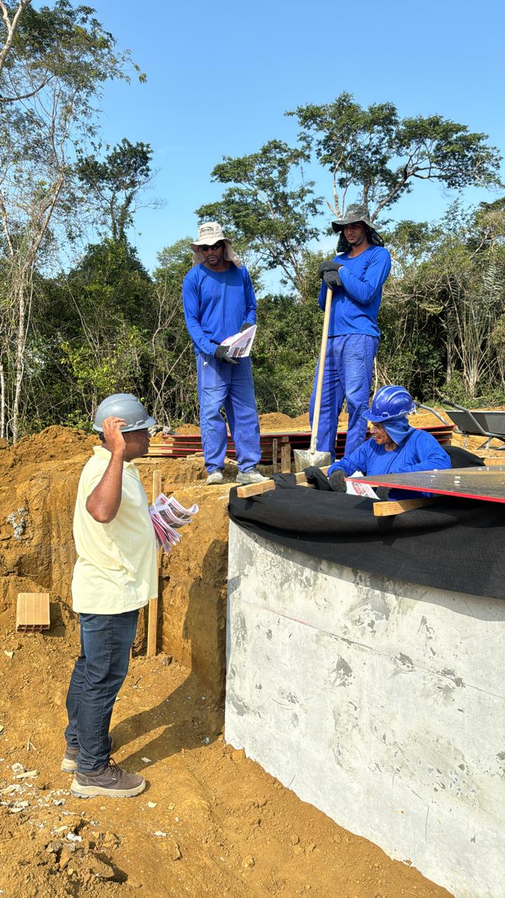 O diretor Marcos César (foto) e o presidente Carlos Silva visitam o canteiro de obras da Construtora Kazza, construção de 170 casas, no município de Ubaíra. Obra da Conder, Governo do Estado da Bahia.