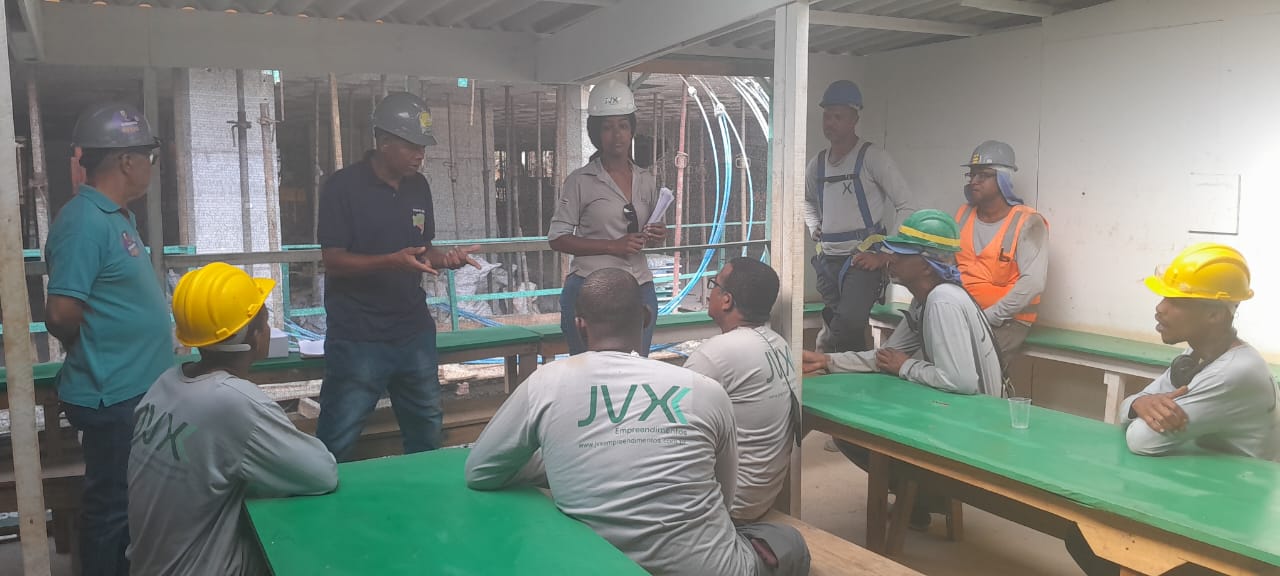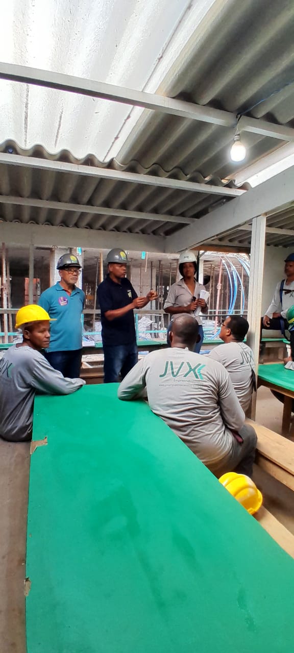 Falaram sobre a importância da segurança e prevenção de riscos de acidentes de trabalho nas obras de construção.