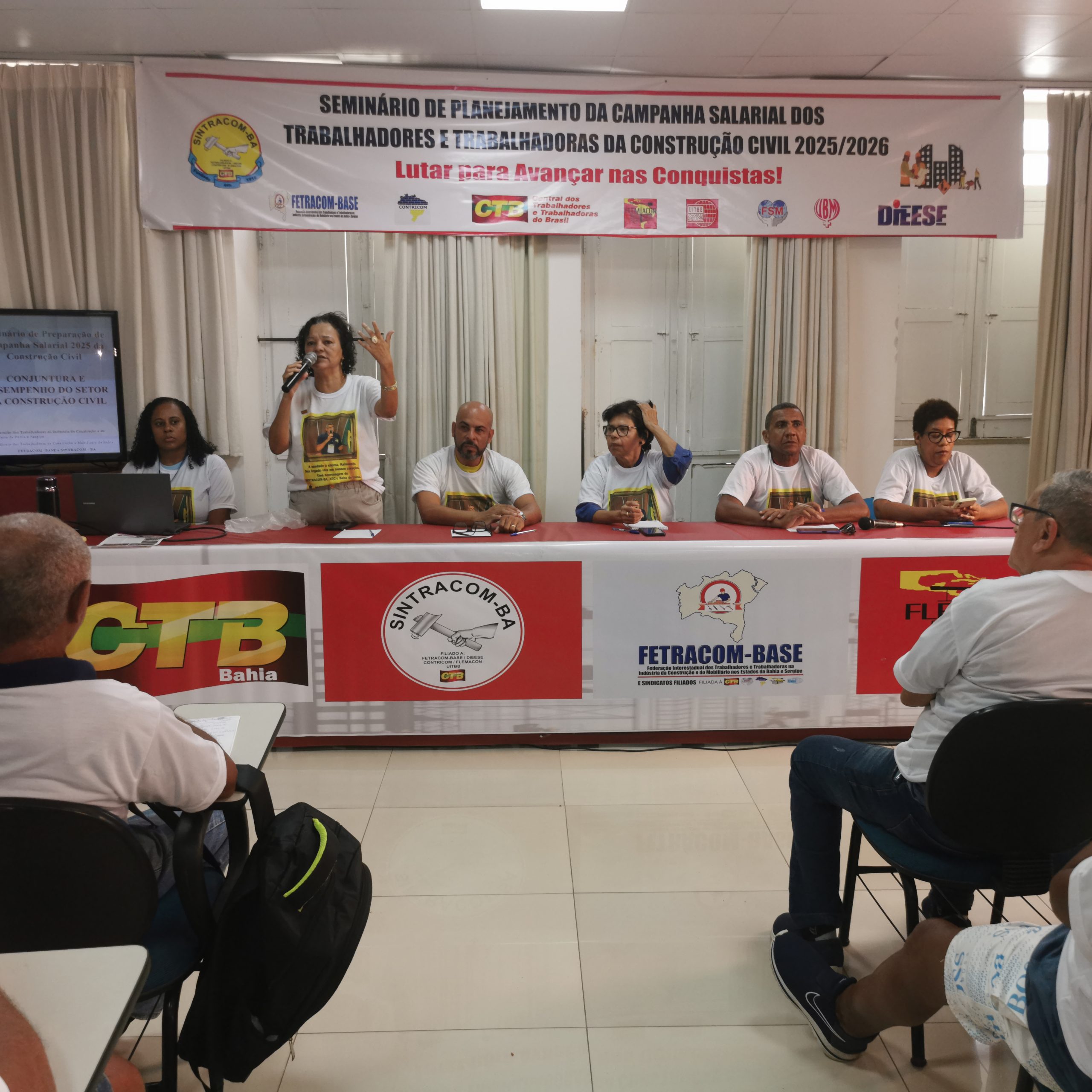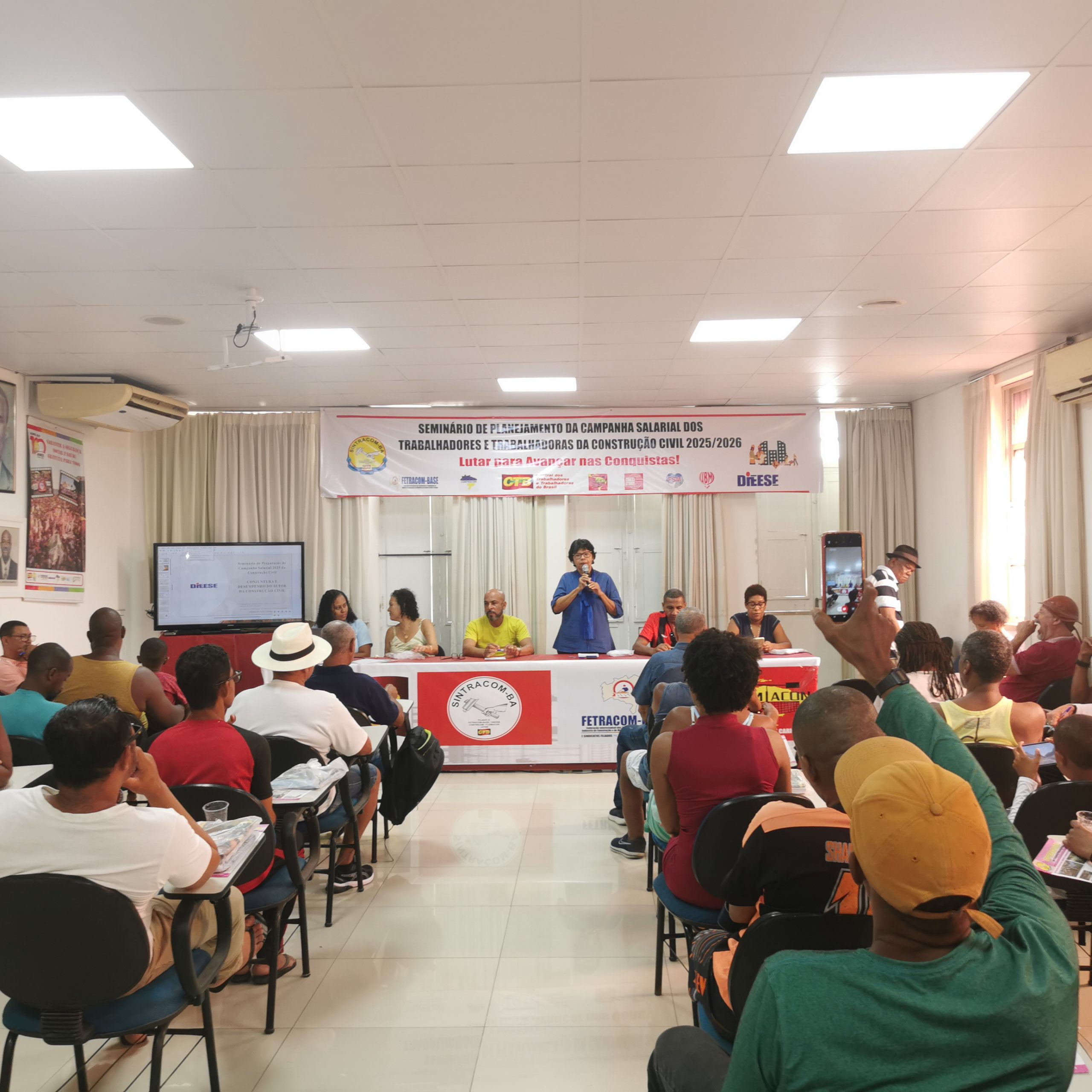 Trabalhadores e trabalhadoras participaram, na manhã deste sábado, 23/11, do Seminário de Planejamento da Campanha Salarial 2025 e assembleia geral, realizados pelo SINTRACOM-BA e FETRACOM-BASE, no auditório do SINTRACOM-BA.