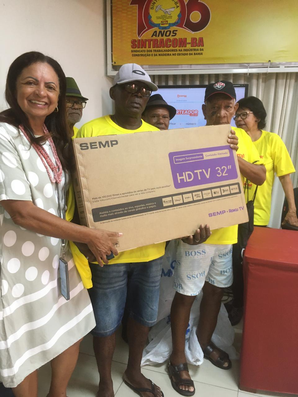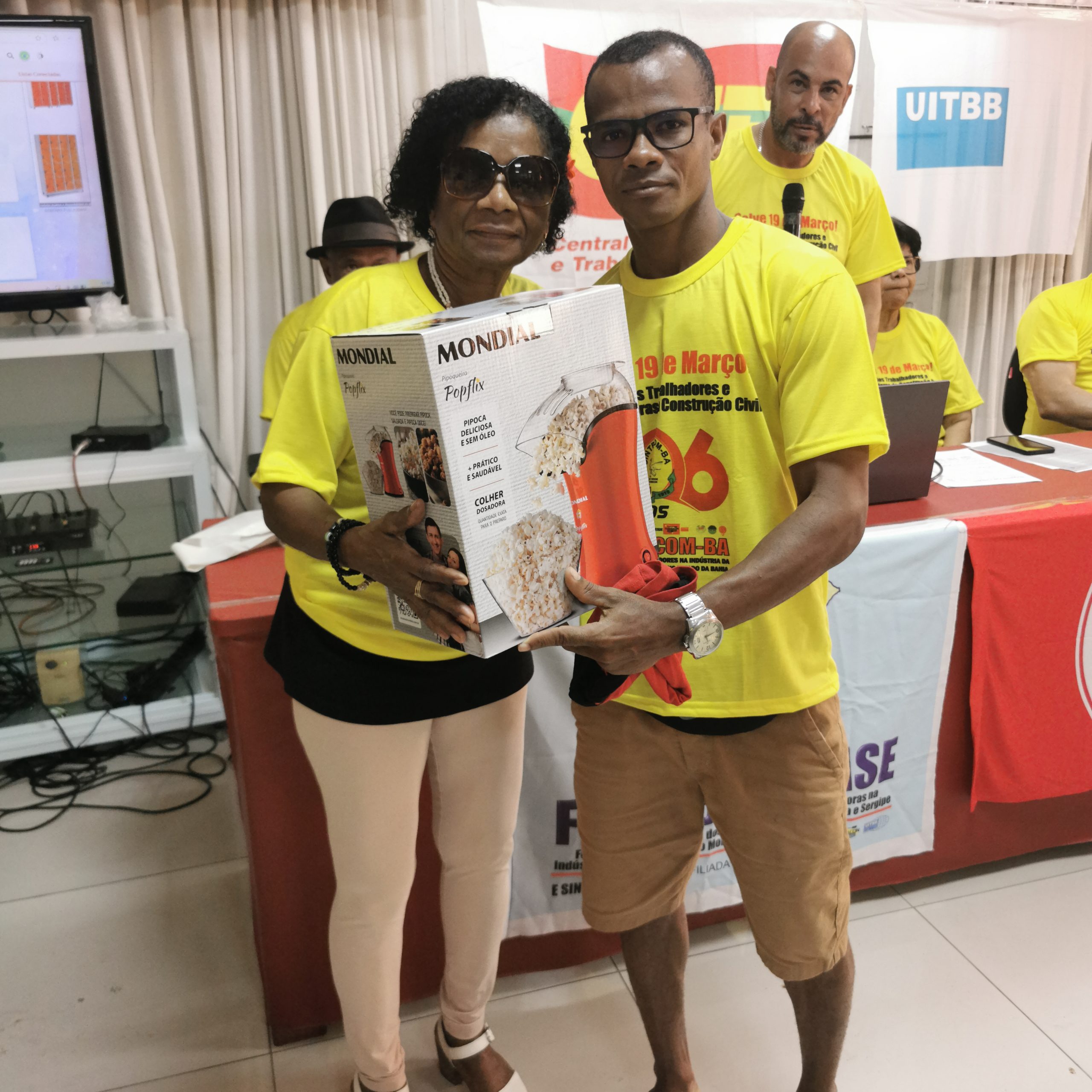 Teve de tudo que uma boa festa merece: bolo, “parabéns pra você”, cantorias animadas puxadas pelo ex-diretor do SINTRACOM-BA Hipólito Pereira, presentes de brindes sorteados entre os trabalhadores presentes, discursos e vídeos com saudações enviadas pelo secretário Estadual do Trabalho, Emprego e Renda (Setre), Augusto Vasconcelos, o deputado federal Daniel Almeida e o secretário geral da União Internacional de Sindicatos de Trabalhadores da Construção (UITBB), Michalis Papanikolaou.