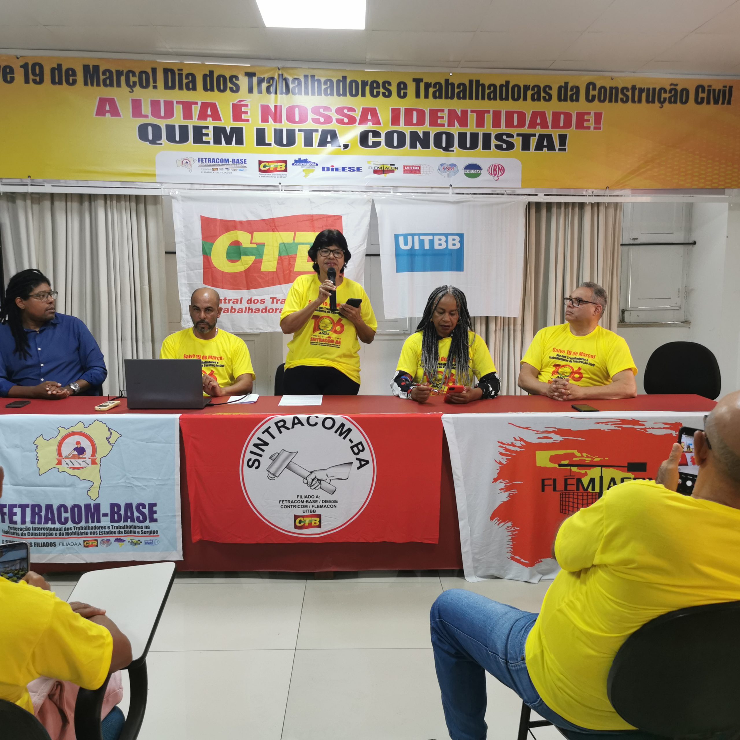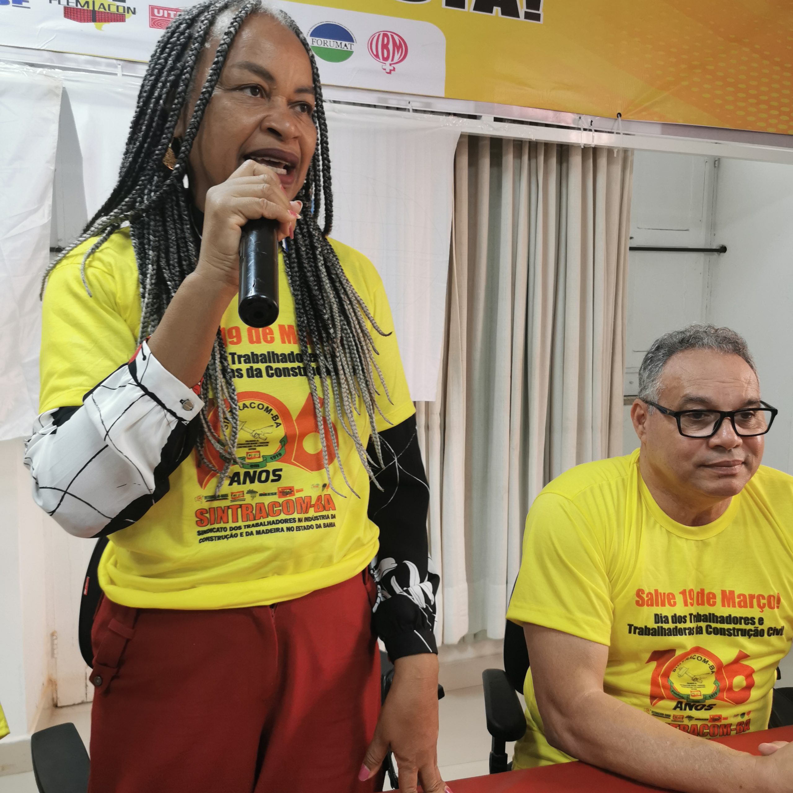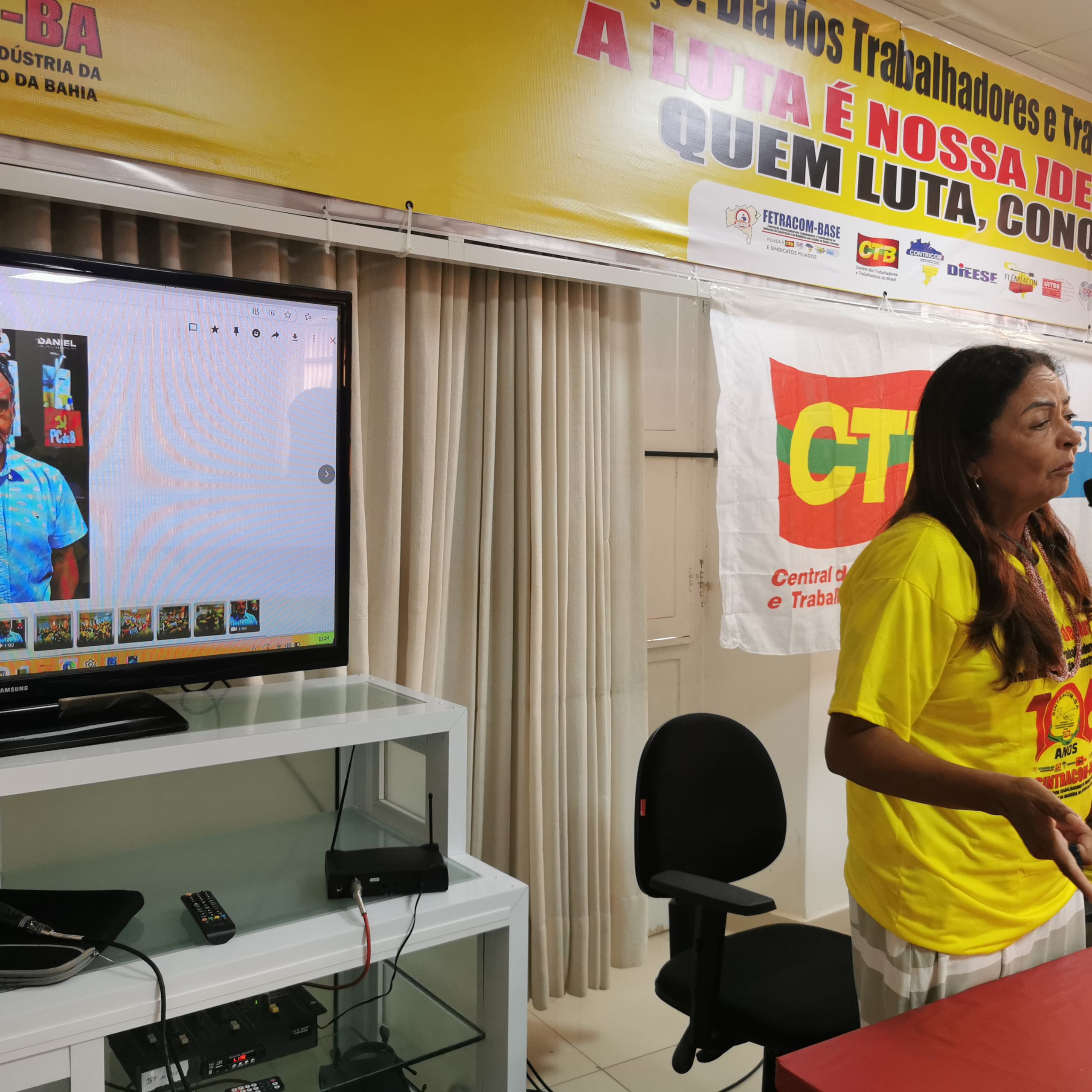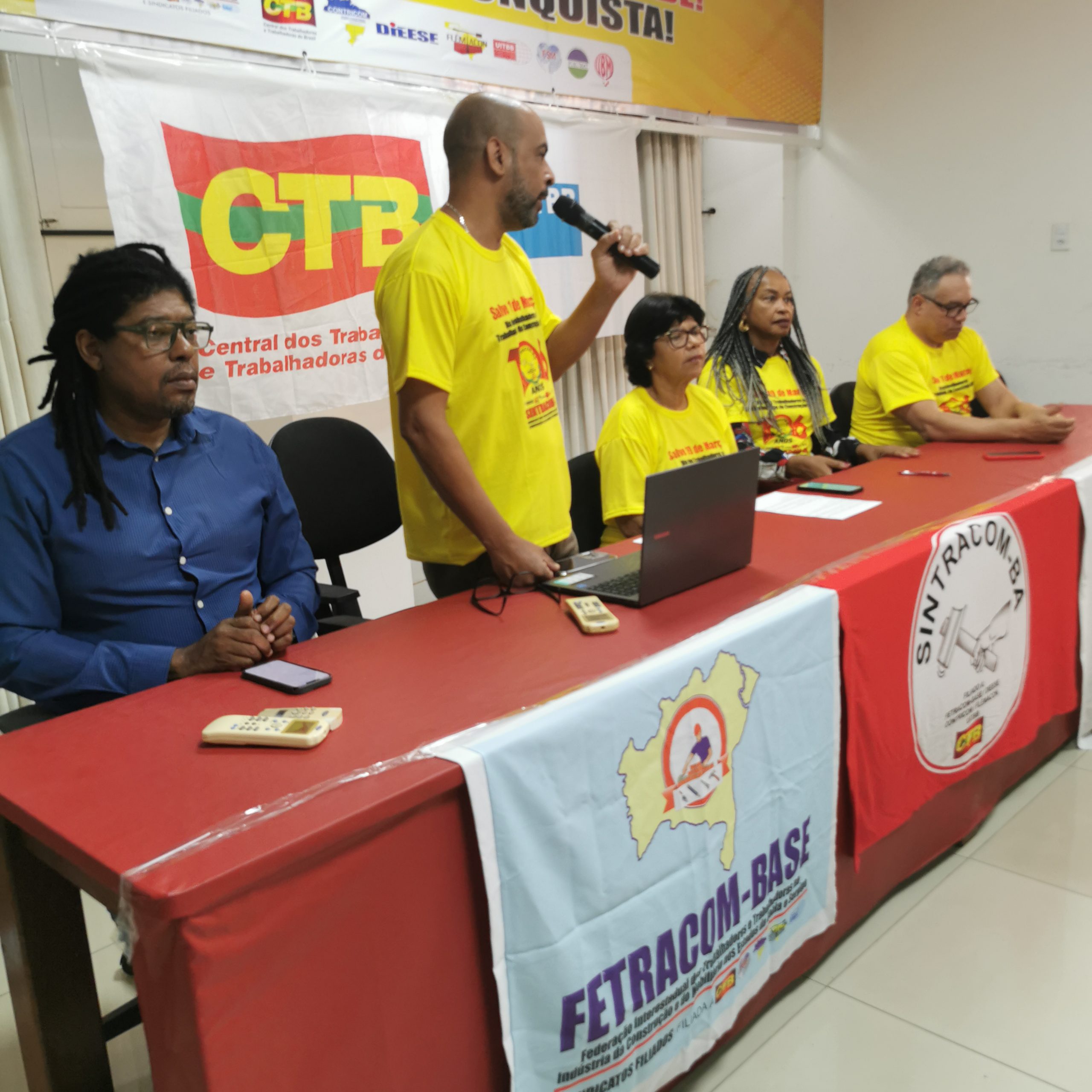 Juntaram-se à mesa também o advogado do SINTRACOM-BA, Elias Alves, que saudou a categoria pelo seu dia, e a diretora Maria Nery.